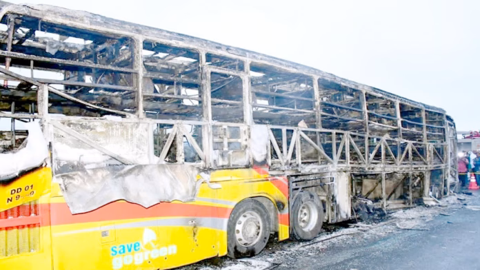 کرنول، 24 اکتوبر (ہ س)۔ کرنول ضلع کے ایلیلنڈکونڈا چوراہے پر ایک بڑا سڑک حادثہ پیش آیا۔ بنگلورو سے حیدرآباد جا رہی “کاویری ٹریولز” کی بس میں آگ لگ گئی۔ بس مکمل طور پر جل کر خاک ہوگئی اور اس میں سوار مسافر آگ کی زد میں آگئے۔بتایا جا رہا ہے کہ حادثے کے وقت بس میں 40 مسافر سوار تھے۔ بارہ مسافر بس سے اترنے میں کامیاب ہوگئے جبکہ باقی مسافر بس میں موجود رہے۔ حادثہ صبح ساڑھے تین بجے پیش آیا۔ عینی شاہدین کے مطابق ایک دو پہیہ گاڑی سے ٹکرانے کے بعد بس میں آگ لگی۔اطلاعات کے مطابق حادثے میں کم از کم 20 مسافر ہلاک ہوگئے ہیں۔ زخمیوں کو کرنول کے سرکاری اسپتال منتقل کیا گیا۔ بس کا ڈرائیور اور اس کا معاون بال بال بچ گئے۔ عینی شاہدین نے بتایا کہ ایمرجنسی گیٹ توڑ کر 12 مسافر محفوظ طور پر باہر نکلنے میں کامیاب ہوئے، جنہیں معمولی چوٹیں آئیں۔حادثے کے مقام پر زبردست بارش جاری تھی۔ اطلاع ملتے ہی پولیس موقع پر پہنچی اور ریسکیو کا کام شروع کیا۔ فائر بریگیڈ کے اہلکار بھی پہنچ کر آگ پر قابو پانے میں کامیاب ہوئے۔ حادثہ اس وقت پیش آیا جب بس تھوڑی ہی دیر میں کرنول شہر پہنچنے والی تھی۔بتایا جا رہا ہے کہ زیادہ تر مسافر حیدرآباد شہر کے رہائشی تھے۔ ہائی وے سے گزرنے والی دوسری گاڑی کے مسافروں نے ہندوپور کے نوین بس حادثے میں زخمی ہونے والے چھ افراد کو اپنی کار سے کرنول اسپتال پہنچایا۔اسی دوران پٹپرتھی سے حیدرآباد جا رہی “ہیما ریڈی” نامی بس میں آگ لگتے دیکھ کر بس روک دی گئی۔ ڈرائیور نے فوری طور پر پولیس اور ضلع انتظامیہ کو اطلاع دی، جس کے بعد امدادی کارروائی شروع کی گئی۔رامی ریڈی، وینوگوپال ریڈی، ستیہ نارائن، شری لکشمی، نوین کمار، اکھل، جشمیتا، اکیرا، رمیش، جے سوریا اور سبرامنیم نام کے مسافر اس حادثے میں زندہ بچ گئے۔ضلع انتظامیہ نے بتایا کہ تقریباً 20 افراد کے ہلاک ہونے کا خدشہ ہے، جس کی باضابطہ تصدیق کا انتظار ہے۔