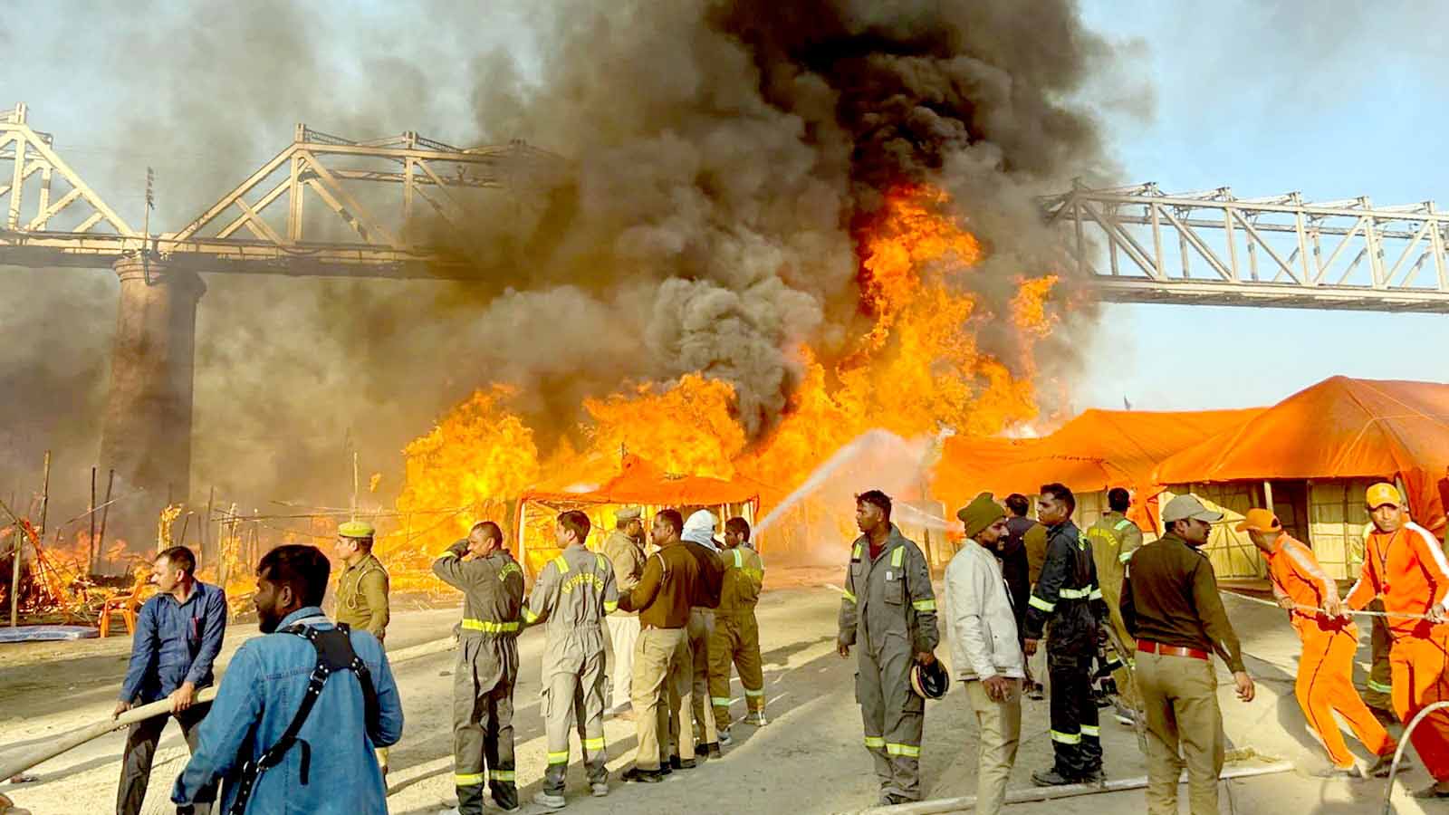 پریاگ راج، 19 جنوری:۔ (ایجنسی) یوپی کے پریاگ راج میں جاری مہاکمبھ میلے میں شدید آگ لگ گئی ہے۔ آگ کی شدت کا یہ عالم تھا کہ دور سے ہی اس کی لپٹیں نظر آ رہی تھیں۔ اس آگ میں تقریباً 20-25 ٹینٹ جل کر راکھ ہو گئے ہیں۔ یہ آگ اکھاڑے سے آگے والی سڑک پر لوہے کے پُل کے نیچے لگی ہے۔ آگ کی وجہ سے ٹینٹوں میں رکھے گیس سلنڈر بھی یکے بعد دیگرے بلاسٹ ہوتے چلے گئے جس کی وجہ سے آگ کی شدت میں مزید اضافہ ہو گیا۔ حالانکہ انتظامیہ کی مستعدی کی وجہ سے آگ پر بہت جلد قابو پا لیا گیا۔ آگ بجھانے کے لیے فائر بریگیڈ کی کئی گاڑیوں کا استعمال کیا گیا ہے۔ واضح ہو کہ سیکٹر 19 اور سیکٹر 5 کے بارڈر پر اولڈ جی ٹی روڈ کراسنگ کے پاس یہ خطرناک آگ لگی تھی۔ سب سے پہلے وویکانند کیمپ میں آگ لگی تھی۔ آگ لگنے کی اصل وجہ ابھی تک سامنے نہیں آئی ہے، کسی۔ وہیں مہاکمبھ میں لگی آگ کے معاملے کا اتر پردیش کے وزیر اعلیٰ یوگی آدتیہ ناتھ نے نوٹس لیا ہے۔ وزیر اعلیٰ کی ہدایت پر سنیئر افسران موقع پر موجود ہیں۔ واضح ہو کہ واقعہ میں ابھی تک کسی عقیدت مند کے جانی نقصان کی کوئی اطلاع سامنے نہیں آئی ہے۔