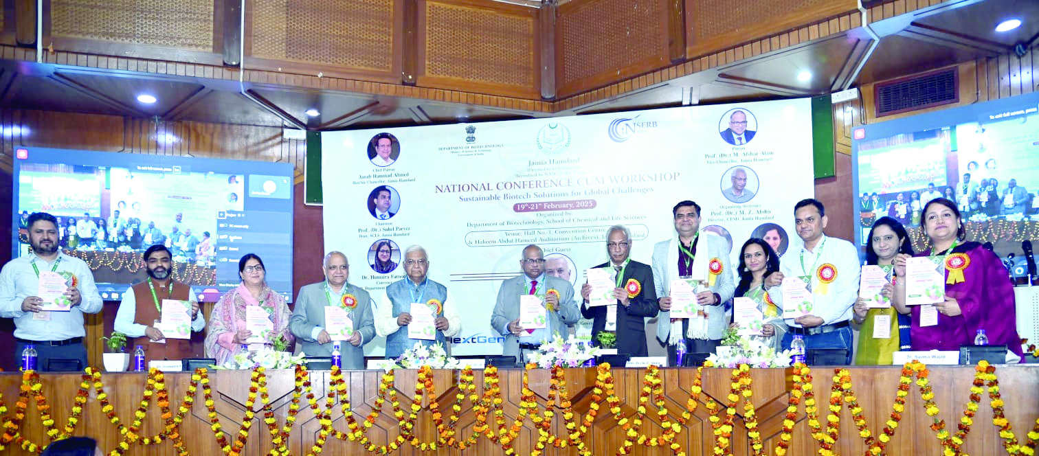 نئی دہلی، 19 فروری :جامعہ ہمدرد کے اسکول آف کیمیکل اینڈ لائف سائنسز کے شعبہ بایوٹیکنالوجی نے آج کنونشن سینٹر، جامعہ ہمدرد، نئی دہلی میں “عالمی چیلنجز کے لیے پائیدار بایوٹیک حل” کے عنوان سے سہ روزہ قومی کانفرنس اور ورکشاپ کا آغاز کیا۔ اس کانفرنس کا مقصد نامور سائنس دانوں، ماہرین تعلیم، پالیسی سازوں اور صنعت کے ماہرین کو ایک پلیٹ فارم پر جمع کرنا ہے تاکہ بایوٹیکنالوجی، پائیدار زراعت، صحت عامہ اور ماحولیاتی سائنس میں ہونے والی ترقیات پر تبادلہ خیال کیا جا سکے۔ مہمانِ خصوصی ڈاکٹر سنجے کمار، چیئرمین، ایگریکلچرل سائنٹسٹس ریکروٹمنٹ بورڈ (ASRB)، محکمہ زرعی تحقیق و تعلیم، وزارت زراعت و کسان فلاح و بہبود، حکومت ہند نے کلیدی خطاب کیا۔ انہوں نے عالمی چیلنجز سے نمٹنے میں بایوٹیکنالوجی کے اہم کردار اور زراعت، صحت اور ماحولیات کے لیے پائیدار حل تلاش کرنے میں اکیڈمیا اور صنعت کے درمیان اشتراک کی اہمیت کو اجاگر کیا۔ جامعہ ہمدرد کے معزز وائس چانسلر، پروفیسر (ڈاکٹر) ایم. افشار عالم نے اپنے صدارتی خطاب میں جامعہ ہمدرد کی سائنسی تحقیق اور اختراعات کے لیے وابستگی پر زور دیا۔ انہوں نے کہا کہ بایوٹیکنالوجی صحت عامہ، زراعت اور ماحولیاتی پائیداری کو بہتر بنانے میں کلیدی کردار ادا کر سکتی ہے۔ یہ کانفرنس پروفیسر ایم. زیڈ. عابدین (آرگنائزنگ سیکریٹری) کی قیادت میں منعقد ہو رہی ہے، جبکہ ڈاکٹر حمیرہ فاروقی (صدر شعبہ بایوٹیکنالوجی)، ڈاکٹر سائمہ واجد اور ڈاکٹر جاگرتی نارنگ بطور کنوینر شامل ہیں۔ مزید برآں، ڈاکٹر جاوید احمد شیخ، ڈاکٹر معراج اے. انصاری، ڈاکٹر مونیکا سیفی، اور ڈاکٹر جاوید احمد بطور کو-کنوینر معاونت فراہم کر رہے ہیں۔