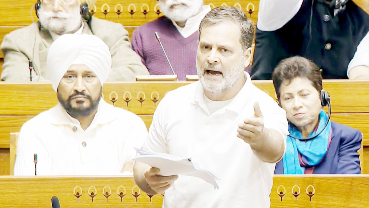 راہل گاندھی نے پھر اپنی بات رکھنے کی کوشش کی تو کرن رجیجو نے کہا کہ ملک کو نیچا دکھا کر آپ کو کیا فائدہ حاصل ہوگا؟ ایسی باتیں کی جا رہی ہیں جن کا یہاں کوئی جواز نہیں ہے۔ ایوان میں ایسی باتیں نہیں کہنی چاہئیں جن سے فوج کا حوصلہ پست ہو۔ ان کا الزام تھا کہ راہل گاندھی ایسے موضوع پر بات کر رہے ہیں جس کے بارے میں انہیں کوئی معلومات نہیں ہیں۔اس دوران لوک سبھا اسپیکر اوم برلا نے کہا کہ ایوان قواعد و ضوابط کے مطابق چلے گا۔ صدر کے خطبے پر ہی اپنی بات رکھیں۔ آپ مسلسل چیئر کی دی گئی ہدایات کی خلاف ورزی کر رہے ہیں۔ حکومت کی پالیسیوں پر بات کریں۔ اگر فوج پر تنقید کی جائے گی تو یہ مناسب نہیں ہوگا۔ ایوان میں وہی حقائق رکھے جائیں جو قومی مفاد میں ہوں۔راہل گاندھی نے کہا کہ فوج کا ہر جوان حقیقت کو جانتا ہے۔ اس کے بعد ایوان میں شدید ہنگامہ ہو گیا، جس کے باعث کارروائی شام چار بجے تک کے لیے ملتوی کر دی گئی۔اس سے قبل راہل گاندھی نے اپنی تقریر کے دوران ایک سابق فوجی سربراہ کی ایک غیر شائع شدہ کتاب کا حوالہ دیتے ہوئے ہند-چین سرحد پر ڈوکلام کے تناظر میں کچھ کہنے کی کوشش کی۔ اس پر وزیر دفاع راج ناتھ سنگھ نے سخت اعتراض کرتے ہوئے کہا کہ کسی رسالے یا غیر شائع شدہ کتاب کا حوالہ دینا ایوان کے قواعد کے خلاف ہے۔ انہوں نے الزام لگایا کہ قائدِ حزبِ اختلاف غیر شائع شدہ کتاب کا حوالہ دے کر ایوان کو گمراہ کرنے کی کوشش کر رہے ہیں۔اس پر حکمراں اور اپوزیشن ارکان کے درمیان نوک جھونک شروع ہو گئی۔ اس دوران اسپیکر اوم برلا نے قواعد کا حوالہ دیتے ہوئے فیصلہ دیا کہ ایوان میں کسی اخبار کی کٹنگ، رسالے یا کسی کتاب میں شائع مواد کی بنیاد پر کوئی رکن اپنی بات نہیں رکھ سکتا۔اس موقع پر وزیر داخلہ امت شاہ اور پارلیمانی امور کے وزیر کرن رجیجو نے بھی مسٹر سنگھ کی حمایت کی اور کہا کہ قائدِ حزبِ اختلاف کو کسی رسالے کے حوالے سے ایوان میں بات رکھنے کا حق نہیں ہے۔ دونوں جانب کے ارکان نے قواعد کا حوالہ دیا، جس پر اسپیکر نے کہا کہ ان کی دی گئی ہدایت قواعد کے مطابق ہے اور تمام ارکان کو اس کی پابندی کرنی چاہیے۔مسٹر امت شاہ نے کہا کہ وزیردفاع صرف اتنا ہی پوچھ رہے ہیں کہ جس کتاب کا حوالہ دیا جا رہا ہے وہ شائع ہی نہیں ہوئی، تو پھر اس کا ذکر کہاں سے کیا جا رہا ہے۔ انہوں نے کہا کہ خود قائدِ حزبِ اختلاف تسلیم کر رہے ہیں کہ کتاب شائع نہیں ہوئی۔ امت شاہ نے کہا کہ قائدِ حزبِ اختلاف کو بولنے کا حق ہے، لیکن اسپیکر کی ہدایت کی پابندی کی جانی چاہیے، اپوزیشن لیڈر کسی دوسرے کی لکھی باتوں کو نہیں بول سکتے۔ وہ ضوابط کی خلاف ورزی کررہے ہیں۔پارلیمانی امور کے وزیر کرن رجیجو نے کہا کہ جب اسپیکر ہدایت دے چکے ہیں تو قائدِ حزبِ اختلاف کو اس پر عمل کرنا چاہیے۔ انہوں نے کہا کہ خود وزیر اعظم نریندر مودی ایوان میں قائدِ حزبِ اختلاف کی بات سننے کے لیے موجود ہیں، اس لیے انہیں قواعد کے مطابق بات رکھنی چاہیے۔وزیردفاع کے دوبارہ اعتراض کے باوجود جب مسٹر گاندھی بار بار اسی حقائق کا حوالہ دینے کی کوشش کی توایوان میں ہنگامہ مزید بڑھ گیا۔ اس پر اسپیکر نے مسٹر گاندھی کو روکتے ہوئے کہا کہ کسی بھی رکن کو چیئر کی توہین کا حق نہیں ہے۔ انہوں نے خبردار کیا کہ وہ قواعد کی پابندی کرتے ہوئے اپنی بات رکھیں۔ انہوں نے کہا کہ اگر وہ منمانی کرتے ہیں تو ایسی صورت حال میں ایوان نہیں چل سکتا۔ہنگامے کے دوران بی جے پی کے رکن ڈاکٹر نشی کانت دوبے نے بھی قواعد کا حوالہ دیتے ہوئے کہا کہ اخبار کی کٹنگ، کتاب یا غیر مصدقہ موضوع کا حوالہ نہیں دیا جانا چاہیے۔ اسپیکر اوم برلا نے بھی مسٹر گاندھی سے کہا کہ ایوان میں شائستگی برقرار رکھنا ضروری ہے اور صرف مستند مواد کا ہی ذکر کیا جانا چاہیے۔