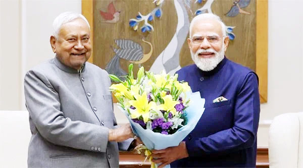 نئی دہلی، 22 دسمبر (ہ س): بہار کے وزیر اعلی نتیش کمار نے پیر کو یہاں وزیر اعظم نریندر مودی اور مرکزی وزیر داخلہ امت شاہ سے ملاقات کی۔ مرکزی ماہی پروری، حیوانات اور دودھ کی پیداوار کے وزیر للن سنگھ اور بہار کے نائب وزیر اعلیٰ سمراٹ چودھری بھی موجود تھے۔ ملاقات کے بعد چودھری نے انسٹاگرام پر پوسٹ کیا کہ بہار میں قومی جمہوری اتحاد کے زبردست جیت کے بعد وزیر اعلیٰ نتیش کمار نے آج نئی دہلی میں وزیراعظم نریندر مودی سے ملاقات کی۔ انہوں نے کہا کہ وزیر اعظم مودی کی رہنمائی اور قیادت میں ملک اور بہار مسلسل ترقی کر رہے ہیں۔ انہوں نے ترقی یافتہ بہار کے اہداف کے بارے میں بھی قابل قدر رہنمائی حاصل کی۔ اس سے پہلے وزیر اعلیٰ نتیش کمار نے یہاں مرکزی وزیر داخلہ امت شاہ سے بھی ملاقات کی۔ ملاقات کے بعد امت شاہ نے انسٹاگرام پر پوسٹ کیا کہ انہوں نے وزیر اعلیٰ نتیش کمار، مرکزی وزیر للن سنگھ اور نائب وزیر اعلیٰ سمراٹ چودھری سے ملاقات کی۔ انہوں نے مزید کہا کہ مودی اور نتیش حکومت ریاست میں عوامی بہبود اور گڈ گورننس کو مزید بلند کرنے کے لیے پرعزم ہے۔