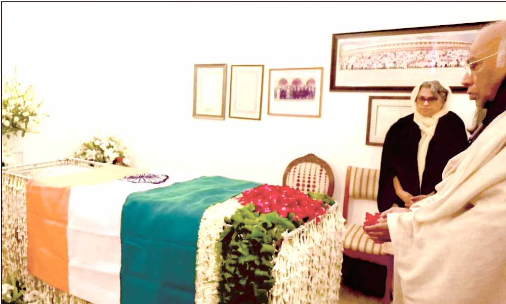 نئی دہلی، 27 دسمبر (یو این آئی) کانگریس پارلیمانی پارٹی کی لیڈر سونیا گاندھی، پارٹی صدر ملکارجن کھڑگے، سابق صدر راہل گاندھی اور جنرل سکریٹری پرینکا گاندھی واڈرا نے سابق وزیر اعظم منموہن سنگھ کی آخری دیدار کرتے ہوئے انہیں خراج عقیدت پیش کیا ہے کانگریس قیادت کے ساتھ ساتھ مختلف پارٹیوں کے سرکردہ لیڈران ڈاکٹر سنگھ کو خراج عقیدت پیش کرنے پہنچ رہے ہیں۔ صدر جمہوریہ دروپدی مرمو، وزیر اعظم نریندر مودی، وزیر داخلہ امت شاہ، کئی دیگر مرکزی وزراء اور سرکردہ لیڈروں نے ڈاکٹر سنگھ کی جسد خاکی پر پھول چڑھائے ۔کرناٹک کے بیلگاوی میں کانگریس ورکنگ کمیٹی کی جاری میٹنگ میں شرکت کرنے گئے مسٹر کھڑگے اور مسٹر گاندھی نے ڈاکٹر سنگھ کے انتقال کی خبر سن کر میٹنگ ادھوری چھوڑ کر دہلی واپس لوٹ گئے ہیں یہ اجلاس 100 سال قبل کانگریس کے بیلگام اجلاس کی یاد میں منعقد کیا جا رہا ہے۔