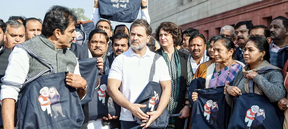 نئی دہلی، 10 دسمبر (یو این آئی) لوک سبھا میں اپوزیشن لیڈر راہل گاندھی کی صدارت میں منگل کو یہاں کانگریس پارلیمانی پارٹی کی میٹنگ ہوئی، جس میں حکومت کو گھیرنے کے لیے تبادلہ خیال کیا گیا میٹنگ میں زیر بحث مسائل کے حوالے سے حکومت پر دباؤ بنانے کی حکمت عملی پر گہرائی سے تبادلہ خیال کیا گیا جس میں مختلف لیڈروں نے اپنی تجاویز پیش کیں میٹنگ کے بعد، مسٹرگاندھی کی قیادت میں پارٹی کے اراکین پارلیمنٹ نے پارلیمنٹ ہاؤس کے مکر دوار کی طرف مارچ کیا اور حکومت سے بدعنوانی کو شہ دینے اور پارلیمنٹ میں من مانی نہ کرنے کو لے کر نعرہ بازی کی۔ اس دوران کئی لیڈروں نے اپنے ہاتھوں میں بینر بھی اٹھا رکھے تھے۔ مارچ کے بعد تمام ارکان پارلیمنٹ کی کارروائی میں حصہ لینے کے لیے ایوان کی طرف روانہ ہوئے۔