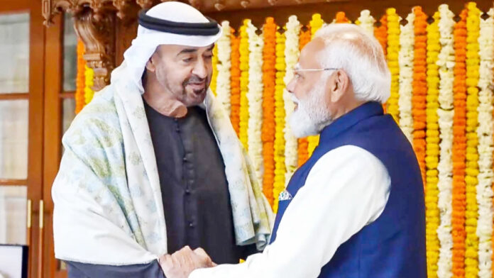 نئی دہلی۔ 24؍ جنوری۔ ایم این این۔ ہندوستان اور متحدہ عرب امارات نے ایک اسٹریٹجک دفاعی شراکت داری قائم کرنے کے لیے ارادے کے خط پر دستخط کیے ہیں، جس کا مقصد دفاعی صنعتی تعاون، جدید ٹیکنالوجی، تربیت، اور انسداد دہشت گردی جیسے شعبوں میں تعاون کو بڑھانا ہے، جو علاقائی جغرافیائی سیاسی تبدیلیوں کے درمیان اہمیت حاصل کرتا ہے۔ دفاع سے آگے، دونوں ممالک نے 2032 تک دو طرفہ تجارت کو دوگنا کرکے 200 بلین ڈالر کرنے، سول نیوکلیئر تعاون کو وسعت دینے، اور متحدہ عرب امارات کی طرف سے گجرات کے دھولیرا خصوصی سرمایہ کاری کے علاقے کی ترقی سمیت فوڈ سیکیورٹی اور سرمایہ کاری کے معاہدوں پر اتفاق کیا۔ رہنماؤں نے دہشت گردی کے خلاف واضح طور پر مقابلہ کرنے کے لیے اپنے عزم کا اعادہ کیا، سرحد پار دہشت گردی کی مذمت کی اور ایف اے ٹی ایف جیسے فریم ورک کے ذریعے دہشت گردی کی مالی معاونت اور منی لانڈرنگ کے خلاف کوششوں کو مضبوط بنانے کا عہد کیا۔ مزید تعاون جدید جوہری ٹیکنالوجیز، سائنس اور اختراعات بشمول AI، ڈیٹا سینٹر انفراسٹرکچر، اور ہندوستان میں ایک سپر کمپیوٹنگ کلسٹر کے قیام تک، ایم ایس ایم ایز کنیکٹوٹی اور مارکیٹ تک رسائی کو فروغ دینے کے اقدامات کے ساتھ ساتھ توسیع کرے گا۔
