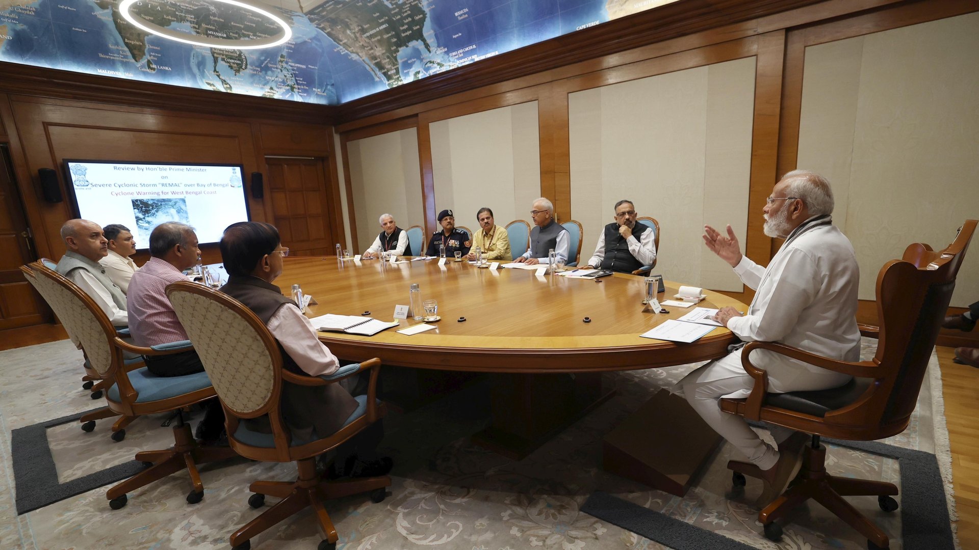 وزیر اعظم نریندر مودی نے اتوار کو اپنی رہائش گاہ پر ایک میٹنگ میں شمالی خلیج بنگال میں سمندری طوفان ’ریمل‘ کی وجہ سے پیدا ہونے والی صورتحال سے نمٹنے کی تیاریوں کا جائزہ لیا۔ محکمہ موسمیات کی پیشین گوئی کے مطابق، سمندری طوفان اتوار کی نصف شب تک مونگلہ (بنگلہ دیش) بنگلہ دیش کے جنوب مغرب کے قریب ساگر جزیرہ اور کھیپوپارا کے درمیان بنگلہ دیش اور اس سے ملحقہ مغربی بنگال کے ساحلوں کو عبور کر سکتا ہے اور اس کی وجہ سے مغربی بنگال اور شمال مشرقی ریاستوں میں بارش کا امکان ہے۔