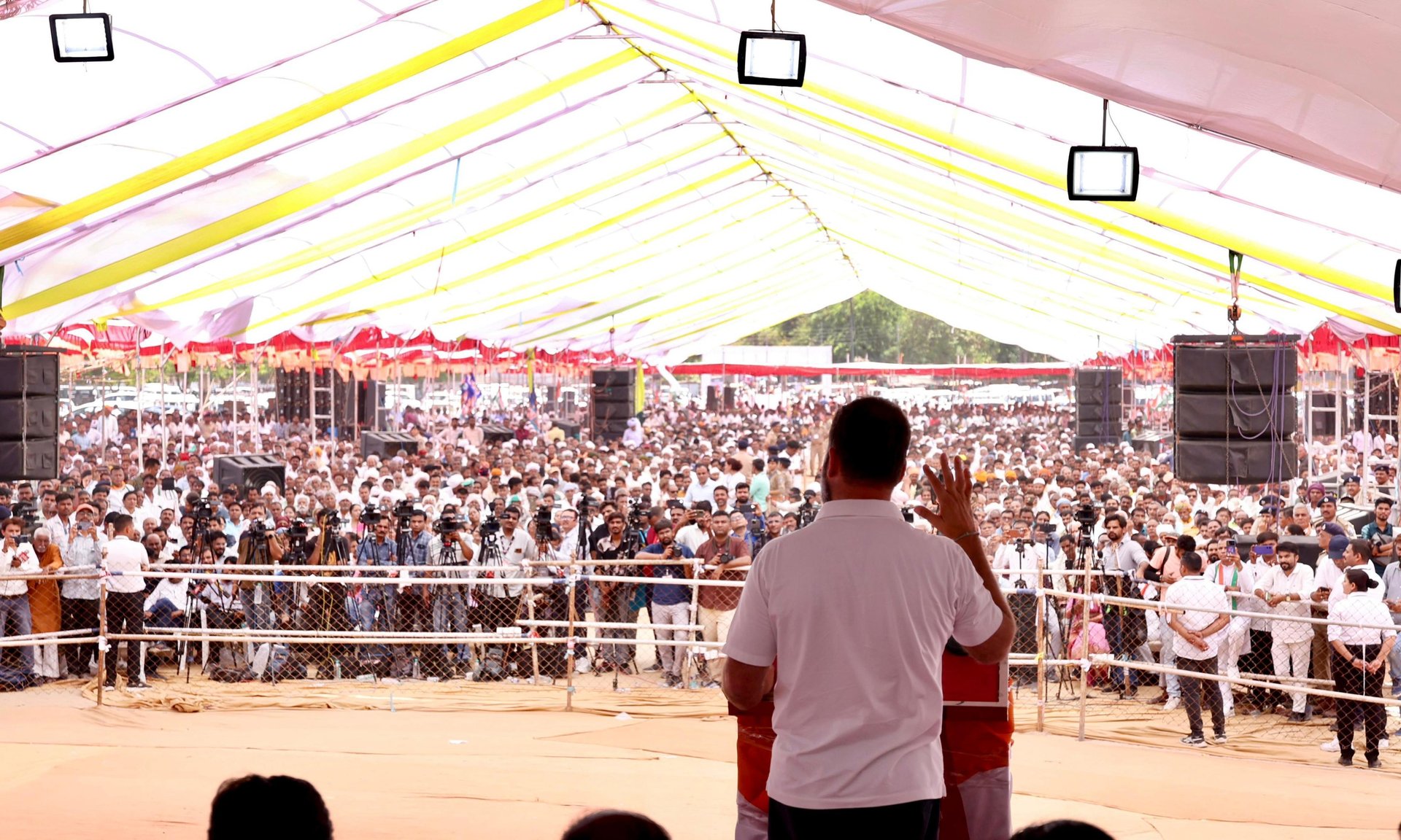 پاٹن میں لوگوں کی زبردست بھیڑ سے خطاب کرتے ہوئے راہل گاندھی نے کہا کہ آج ملک میں دو نظریات کی لڑائی چل رہی ہے۔ ایک طرف کانگریس پارٹی اور انڈیا اتحاد ہے جو آئین کو بچانے میں مصروف ہیں، دوسری طرف نریندر مودی اور آر ایس ایس ہیں جو آئین کو ختم کرنے پر آمادہ ہیں۔ ملک کو آزادی کے بعد جو کچھ ملا، اس کی وجہ آئین ہے۔ آئین غریبوں، کمزوروں اور کسانوں کی حفاظت کرتا ہے۔ مودی حکومت کی پالیسیوں پر حملہ کرتے ہوئے راہل گاندھی نے کہا کہ ہندوستان میں ایک فیصد لوگ 40 فیصد دولت پر کنٹرول رکھتے ہیں، اور اب بی جے پی کے لوگ کہتے ہیں کہ ریزرویشن ختم کر دیں گے۔ ریزرویشن کا مطلب ملک میں غریبوں، قبائلیوں، دلتوں و پسماندوں کی منصفانہ شراکت داری ہے۔ نریندر مودی نجکاری کو اسلحہ بنا کر عوام سے یہ حق چھین لینا چاہتے ہیں۔ نجکاری اور اگنی ویر جیسے کام ریزرویشن کو ختم کرنے کے طریقے ہیں۔