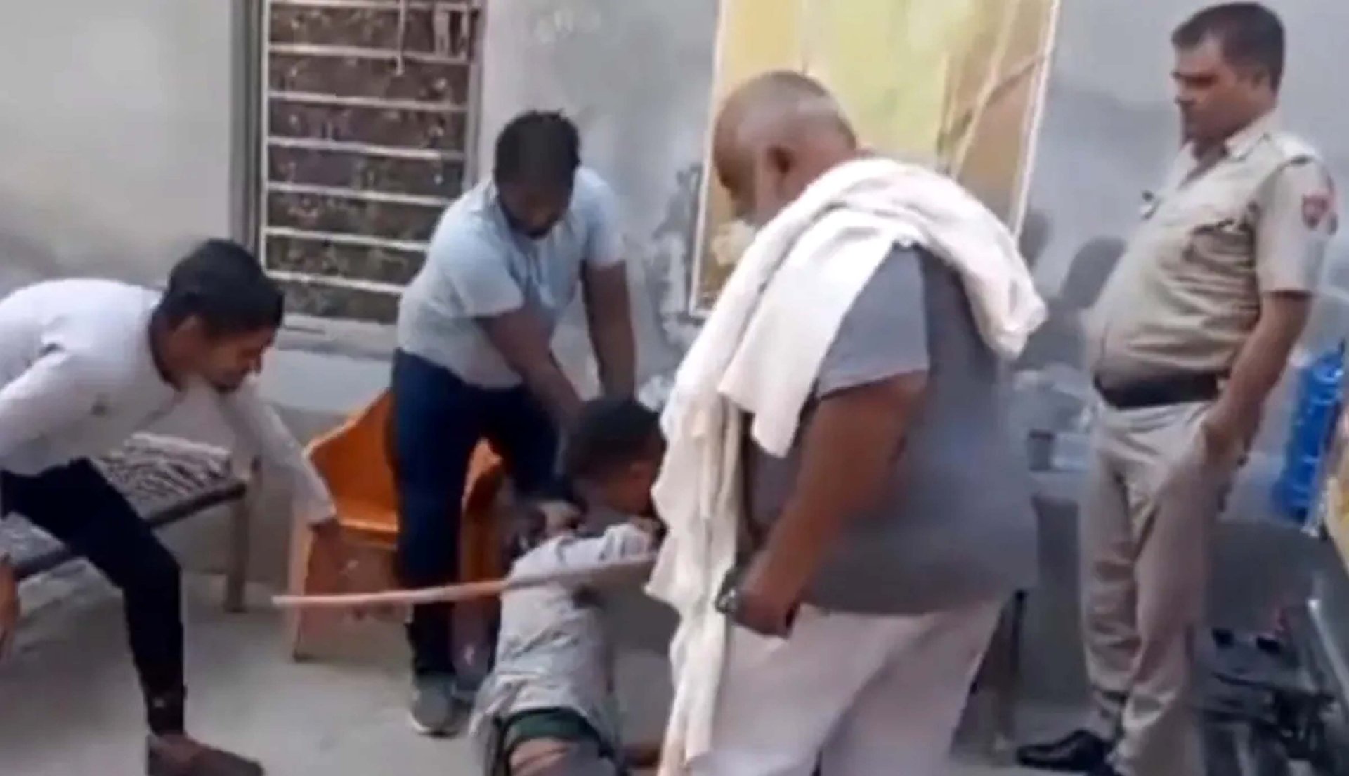 شامو سے کچھ فاصلے پر ایک پولیس اہلکار بھی کرسی پر بیٹھا نظر آتا ہے جو کرسی سے اٹھتا ہے لیکن شامو کی مدد کے لیے آگے نہیں آتا۔ ایک شخص پھر دوسروں سے شامو کو اپنی طرف کرنے کو کہتا ہے اور بجرنگی عرف راج کمار اسے لاٹھی سے کم از کم چار بار مارنے کے لیے آگے بڑھتا ہے۔ پولیس حکام نے بتایا کہ بجرنگی کے آگے بڑھنے سے پہلے ایک لڑکی کی ماں نے بھی شامو کو ڈنڈے سے مارا تھا۔