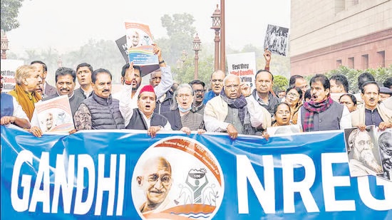 ‘جی رام جی، بل کے خلاف پارلیمنٹ احاطے میں نصف شب کو احتجاج کیا