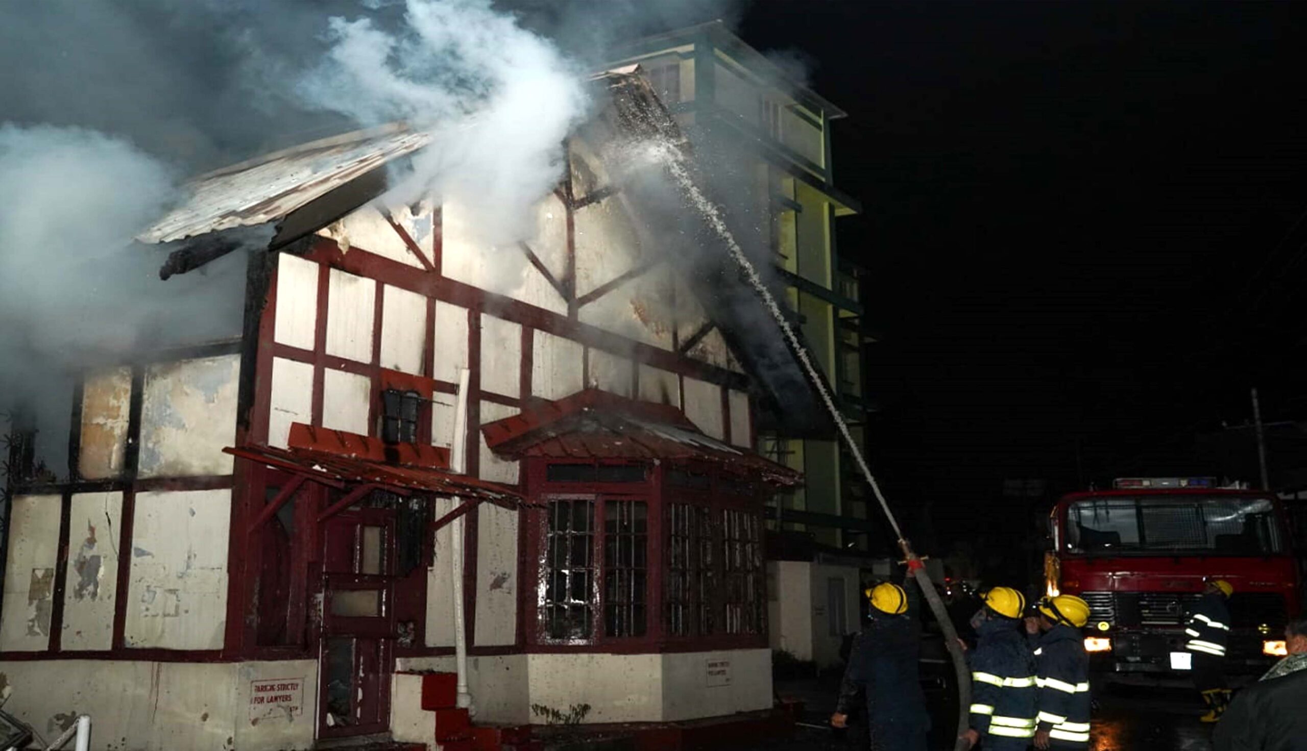 گوہاٹی: شیلانگ بار ایسوسی ایشن کا دفتر، جو میگھالیہ کے قدیم ترین قانونی مراکز میں سے ایک ہے، ہفتہ کی رات دیر گئے آگ لگنے سے جل کر خاکستر ہو گیا۔ حکام کے مطابق لکڑی کی عمارت ہونے کی وجہ سے آگ تیزی سے پورے کمپلیکس میں پھیل گئی۔ چار فائر ٹینڈرز اور امدادی کاموں میں مصروف 20 ملازمین نے آدھی رات کے بعد بھڑکتی آگ پر قابو پایا۔