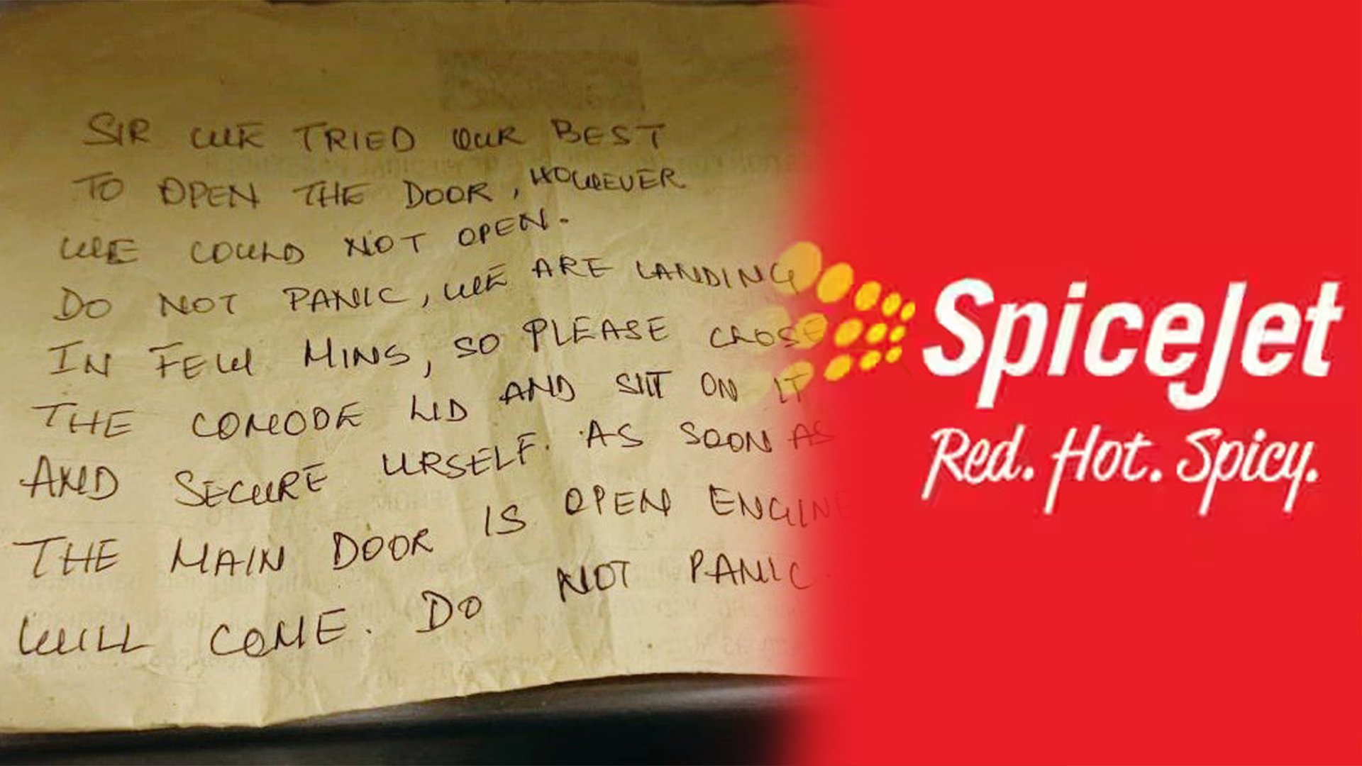 اس دوران پرواز کے عملہ نے بیت الخلا کے دروازے کے نیچے سے ایک نوٹ اندر کھسکایا، جس میں لکھا گیا تھا، ’’ہم دروازہ کھولنے کی پوری کوشش کر رہے ہیں لیکن کھول نہیں پا رہے ہیں۔ آپ پریشان مت ہوں، چند ہی منٹوں میں فلائٹ لینڈ ہو جائے گا، تب تک آپ کموڈ کی سیٹ کو بند کر کے اس پر بیٹھ جائیں اور خود کو محفوظ رکھیں۔ لینڈنگ کے بعد فلائٹ کا دروازہ کھلتے ہی انجینئر آئے جائے گا، پریشان مت ہوں۔‘‘