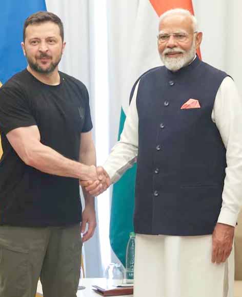 نیویارک/نئی دہلی، 24 ستمبر (یو این آئی) وزیر اعظم نریندر مودی نے پیر کو نیو یارک میں یوکرین کے صدر ولادیمیر زیلنسکی سے ملاقات کی اور بات چیت اور سفارت کاری کے ذریعے یوکرین میں جاری تنازعہ کا پرامن حل تلاش کرنے میں تعمیری کردار ادا کرنے کے ہندوستان کے عزم کا اظہار کیا۔قابل ذکر ہے کہ مسٹر مودی اور مسٹر زیلنسکی کے درمیان گزشتہ ایک ماہ میں یہ دوسری ملاقات ہے۔ اس سے پہلے مسٹر مودی کے یوکرین کے دورے کے دوران دونوں لیڈروں نے کیف میں ملاقات کی تھی۔مسٹر مودی نے تنازعہ کے حل کے لئے ہندوستان کے واضح، مستقل اور تعمیری نقطہ نظر کو بھی دہرایا اور کہا کہ دونوں فریقوں (یوکرین اور روس) کو پرامن طریقے سے حل تلاش کرنے کے لئے ایک میز پر بیٹھنا چاہئے۔ انہوں نے کہا کہ ہندوستان دیرینہ تنازعہ کے مستقل اور پرامن حل کے لیے ہر طرح کی مدد فراہم کرنے کے لیے تیار ہے۔ نیویارک میں اقوام متحدہ کی جنرل اسمبلی (یو این جی اے) کے اجلاس سے قبل دونوں رہنماؤں نے گرمجوشی سے گلے لگایا۔وزارت خارجہ کے ترجمان رندھیر جیسوال نے سوشل میڈیا پلیٹ فارم ایکس پر کہا، “وزیر اعظم نریندر مودی نے آج نیویارک میں اقوام متحدہ کی جنرل اسمبلی (یو این جی اے) کے اجلاس کے موقع پر یوکرین کے صدر ولادیمیر زیلنسکی سے ملاقات کی۔ اس دوران رہنماؤں نے دوطرفہ تعلقات پر تبادلہ خیال کیا۔ انہوں نے یوکرین کی صورتحال پر بھی تبادلہ خیال کیا۔ وزیر اعظم نے بات چیت اور سفارت کاری کے ذریعے تنازعہ کے پرامن حل کے لیے تعمیری کردار ادا کرنے کے لیے ہندوستان کی آمادگی کا اعادہ کیا۔ایک میڈیا بیان میں کہا گیا ہے، “وزیر اعظم مودی نے 23 ستمبر کو نیویارک میں ‘مستقبل کی سربراہی کانفرنس کے دوران یوکرین کے صدر ولادیمیر زیلنسکی کے ساتھ دو طرفہ ملاقات کی۔ دونوں رہنماؤں نے مسٹر مودی کے یوکرین کے حالیہ دورے کو یاد کیا اور دو طرفہ تعلقات کی مسلسل مضبوطی پر اطمینان کا اظہار کیا۔ “یوکرین کی صورتحال اور امن کی راہ پر آگے بڑھنے کا طریقہ بھی ان کی گفتگو میں نمایاں تھا۔”میٹنگ کے دوران، مسٹر مودی نے سفارت کاری اور بات چیت کے ساتھ ساتھ تمام فریقین کے درمیان مشغولیت کے ذریعے تنازعہ کے پرامن حل کے حق میں ہندوستان کے واضح، مستقل اور تعمیری نقطہ نظر کا اعادہ کیا۔ انہوں نے کہا کہ ہندوستان تنازع کے مستقل اور پرامن حل کے لیے ہر طرح کی مدد فراہم کرنے کے لیے تیار ہے۔قابل ذکر ہے کہ تین ماہ سے بھی کم عرصے میں دونوں رہنماؤں کی یہ تیسری ملاقات ہے۔ اس دوران دونوں رہنماؤں نے قریبی رابطے میں رہنے پر اتفاق کیا۔وزیر اعظم نے یو این جی اے پیس سمٹ میں کہا کہ انسانیت کی کامیابی ہماری اجتماعی طاقت میں مضمر ہے، میدان جنگ میں نہیں۔ ہندوستان نے کہا ہے کہ تنازع کا حل میدان جنگ میں نہیں نکالا جا سکتا، اور اس نے اپنے موقف کا اعادہ کیا ہے کہ مذاکرات اور سفارت کاری ہی تنازع کو حل کرنے کے لیے دونوں فریقین کے ساتھ مذاکرات کی میز پر بیٹھتے ہیں۔مسٹر مودی 23 اگست کو کیف میں تھے اور یہ کسی ہندوستانی وزیر اعظم کا یوکرین کا پہلا دورہ تھا۔ اس دورے کے دوران انہوں نے تنازع کا حل تلاش کرنے کے لیے اپنی ذاتی حیثیت میں ہر طرح کی مدد کی پیشکش کی۔اس ملاقات کے بارے میں یوکرین کی حکومت کی طرف سے جاری کردہ ایک بیان میں کہا گیا ہے، “صدر زیلنسکی نے یوکرین کی خودمختاری اور علاقائی سالمیت کی حمایت کرنے پر ہندوستان کا شکریہ ادا کیا۔ مسٹر ولادیمیر زیلنسکی اور مسٹر نریندر مودی نے ان شعبوں میں تعاون کے نفاذ پر تبادلہ خیال کیا جن پر مسٹر مودی کے ایک ماہ قبل یوکرین کے تاریخی دورے کے دوران اتفاق ہوا تھا۔ “ان میں تجارتی اور اقتصادی تعلقات کو بڑھانا، دفاعی تعاون، جنگ کے بعد کی تعمیر نو میں ہندوستان کی شرکت، اور تعلیم، سائنس اور ثقافت میں تعاون شامل ہے۔”بیان میں کہا گیا ہے کہ “ملاقات کے دوران، بین الاقوامی فورمز، خاص طور پر اقوام متحدہ اور جی 20 کے اندر مذاکرات کو مضبوط بنانے کے ساتھ ساتھ امن فارمولے پر عمل درآمد اور دوسری امن سربراہی کانفرنس کی تیاریوں پر خصو
