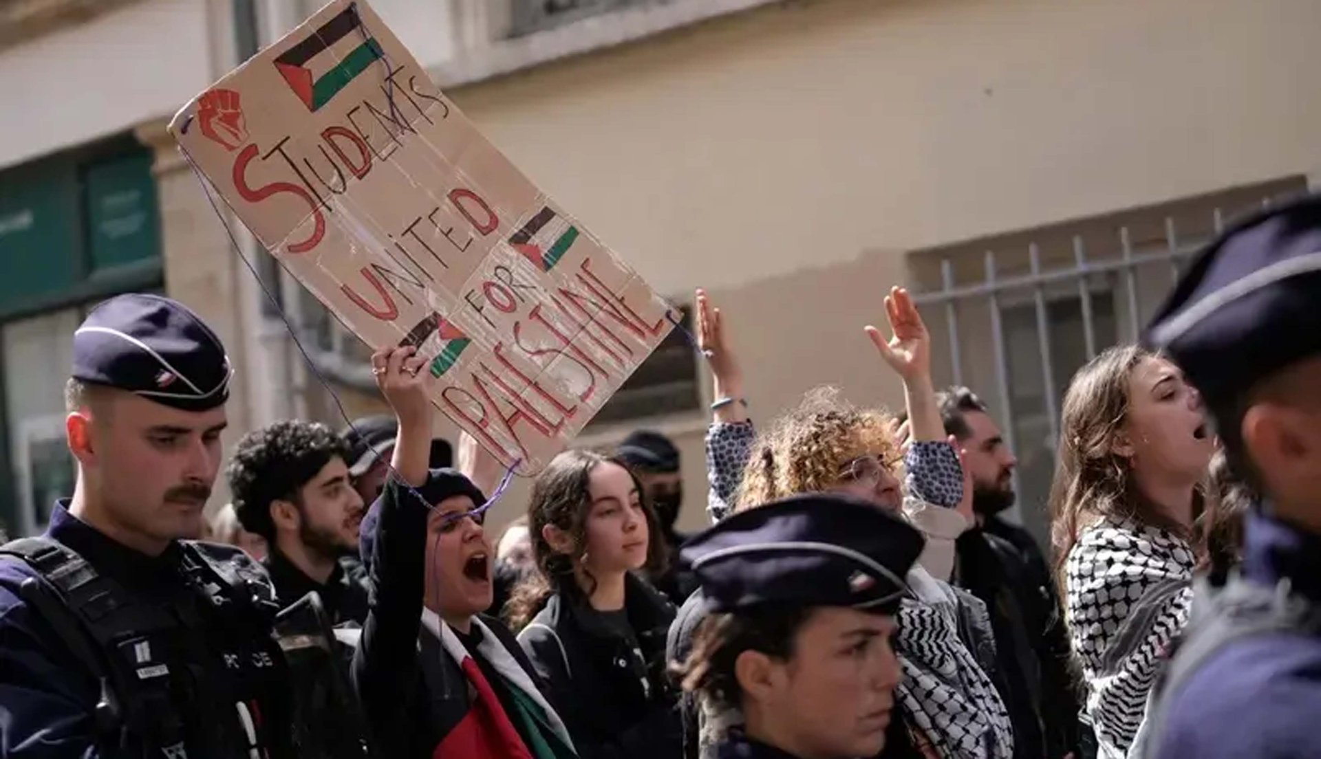 پولیس نے مداخلت کرتے ہوئے ان کارکنوں کو نکال دیا جنہوں نے یونیورسٹی کے اندر خیمے لگا رکھے تھے۔ تقریباً پچاس مظاہرین کو یونیورسٹی کے کیمپس سے ہٹا دیا گیا۔ ان کو سخت سکیورٹی میں گروپوں میں لے جایا گیا۔ اسی طرح کا ایک مظاہرہ پیرس کی مشہور سائنسز پو یونیورسٹی میں کیا گیا، وہاں بھی پولیس اور طلبہ کے درمیان کشیدگی دیکھنے میں آئی۔