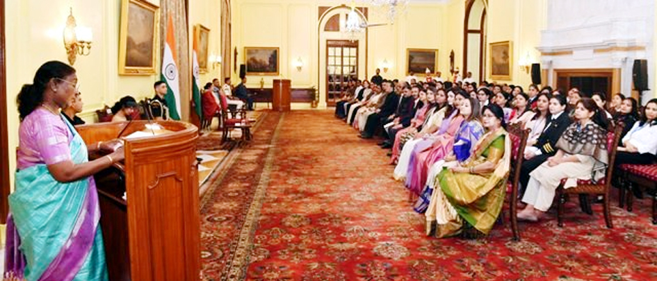 نئی دلی۔ 4؍نومبر۔ایم این این۔صدرجمہوریہ ہند محترمہ دروپدی مرمو نے آج راشٹرپتی بھون میں ہندوستانی ہوا بازی کے شعبے میں کامیابی حاصل کرنے والی خواتین کے ایک گروپ کے ساتھ بات چیت کی۔ یہ میٹنگ ’’عوام کے ساتھ صدر‘‘کے اقدام کے تحت ہوئی جس کا مقصد لوگوں کے ساتھ گہرا تعلق قائم کرنا اور ان کی کار کردگی کا اعتراف کرنا ہے۔اس موقع پر خطاب کرتے ہوئے صدر جمہوریہ نے کہا کہ خواتین ہندوستان کے شہری ہوا بازی کے شعبے میں مختلف آپریشنل اور تکنیکی شعبوں میں کلیدی کردار ادا کر رہی ہیں۔ انہوں نے نوٹ کیا کہ 15 فیصد ایئر ٹریفک کنٹرولرز خواتین ہیں، 11 فیصد فلائٹ ڈسپیچر خواتین ہیں، اور 9 فیصد ایرو اسپیس انجینئرز خواتین ہیں۔ انہوں نے یہ بھی بتایا کہ گزشتہ سال کمرشل لائسنس حاصل کرنے والے پائلٹس میں سے 18 فیصد خواتین تھیں۔ انہوں نے کامیابی حاصل کرنے والی تمام خواتین کی ستائش کی جو اختراعی انداز میں سوچتی ہیں اور نئے راستوں پر چلنے کا حوصلہ رکھتی ہیں۔صدر جمہوریہ نے کہا کہ حکومت ہند کی جامع کوششوں سے شہری ہوا بازی کے شعبے میں خواتین کی ترقی کو فروغ ملا ہے۔ زیادہ سے زیادہ خواتین اب ہوا بازی کو اپنے کیریئر کے طور پر منتخب کر رہی ہیں۔ انہوں نے اس بات پر زور دیا کہ ہوا بازی کی صنعت میں خواتین کی شرکت بڑھانے کے ساتھ ساتھ اس شعبے میں آگے بڑھنے کے مساوی مواقع بھی ضروری ہیں۔صدر جمہوریہ نے کہا کہ تعلیم اور مناسب تربیت کے علاوہ خاندان کی کفالت بھی ضروری ہے۔ اکثر دیکھا گیا ہے کہ بہت سی خواتین اعلیٰ تعلیم حاصل کرنے کے بعد بھی خاندان کی طرف سے عدم تعاون کی وجہ سے اپنے خواب پورے نہیں کر پاتی ہیں۔ انہوں نے کامیابی حاصل کرنے والی خواتین پر زور دیا کہ وہ دوسری خواتین کے لیے رہنما بنیں اور انہیں اپنے کیریئر کا انتخاب کرنے اور اپنے خوابوں کو پورا کرنے کی ترغیب دیں۔