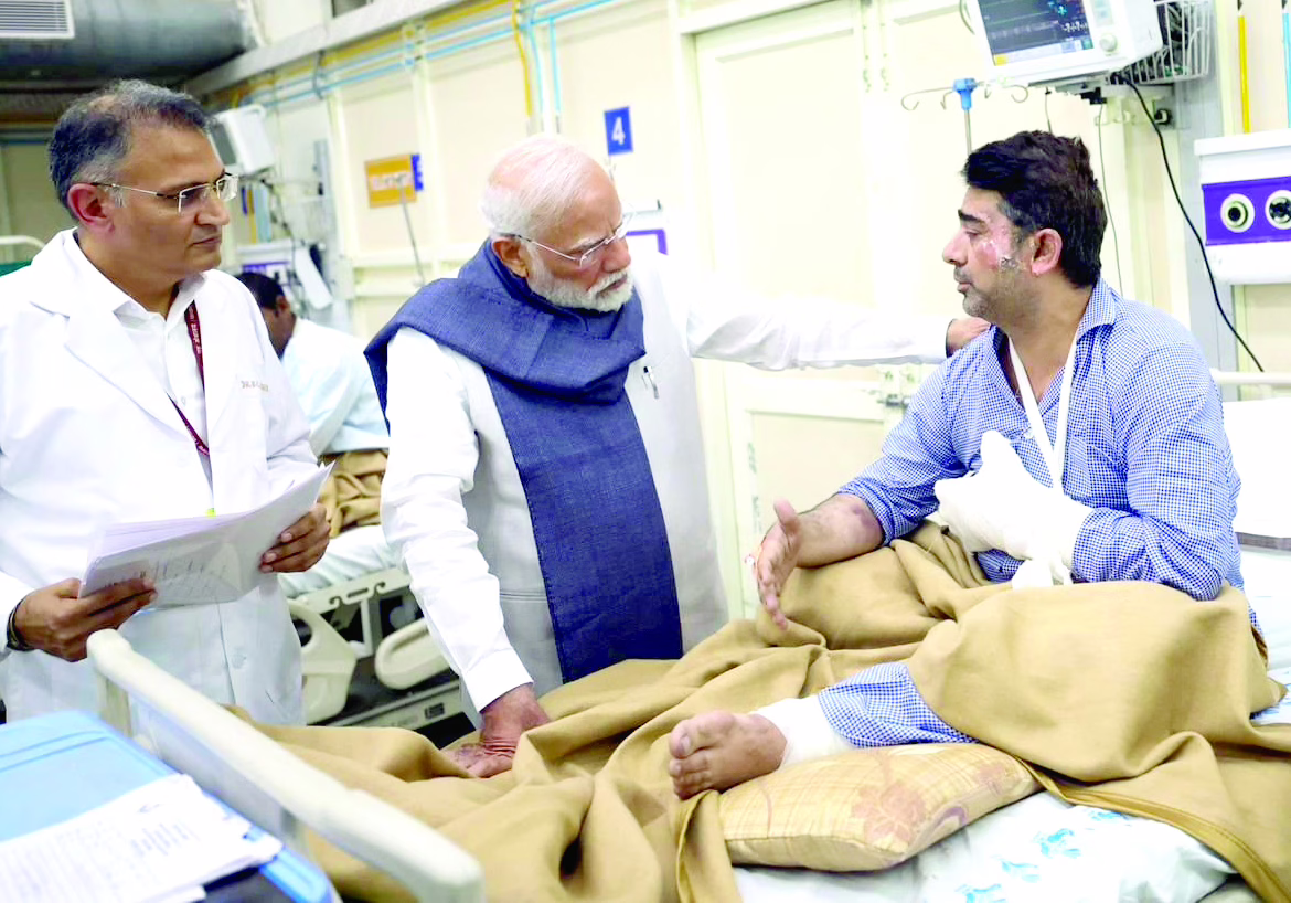 نئی دہلی، 12 نومبر (یواین آئی) وزیر اعظم نریندر مودی نے بھوٹان کے اپنے دورے سے واپسی پر بدھ کو یہاں لوک نائک جے پرکاش اسپتال کا دورہ کیا اور دہلی دھماکے میں زخمی ہونے والے لوگوں سے ملاقات کی۔ مسٹر مودی دھماکے کے ایک دن بعد منگل کو بھوٹان کے دو روزہ دورے پر روانہ ہوئے تھے اور آج دوپہر واپسی پر وہ زخمیوں سے ملنے ایئرپورٹ سے سیدھے اسپتال گئے۔ ڈاکٹروں اور اہلکاروں نے انہیں علاج سے متعلق معلومات فراہم کیں۔وزیراعظم نے دھماکے میں زخمی ہونے والے افراد سے بات کی، ان کی خیریت دریافت کی اور ڈاکٹروں سے ان کے علاج کے بارے میں معلومات طلب کیں۔سوشل میڈیا پر ایک پوسٹ میں مسٹر مودی نے کہا، “ایل این جے پی اسپتال جاکر دہلی دھماکے میں زخمی لوگوں سے ملاقات کی۔ میں ان کے جلد صحت یاب ہونے کی خواہش کرتا ہوں۔ اس سازش کے ذمہ داروں کو انصاف کے کٹہرے میں لایا جائے گا۔”پیر کی شام لال قلعہ کے قریب کار بم دھماکے میں 13 افراد ہلاک اور 20 سے زائد زخمی ہوئے۔مسٹر مودی نے بھوٹان کے دارالحکومت تھمپو میں بھی ایک تقریب میں کہا تھا کہ اس سازش میں ملوث افراد کو بخشا نہیں جائے گا۔دریں اثنا، وزارت داخلہ نے منگل کو دھماکے کی تحقیقات نیشنل انویسٹی گیشن ایجنسی کے حوالے کر دی ہیں۔ وزیر داخلہ امت شاہ نے تحقیقاتی ایجنسیوں کے سربراہوں کے ساتھ ایک اعلیٰ سطحی میٹنگ کی۔ انہوں نے دھماکے کے فوری بعد اسپتال میں زخمیوں کی عیادت کی اور صورتحال کا جائزہ لینے کے لیے جائے وقوعہ کا بھی دورہ کیا تھا۔