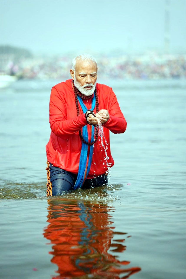 وزیر اعظم نریندر مودی نے تروینی میں لگائی آستھا کی ڈبکی