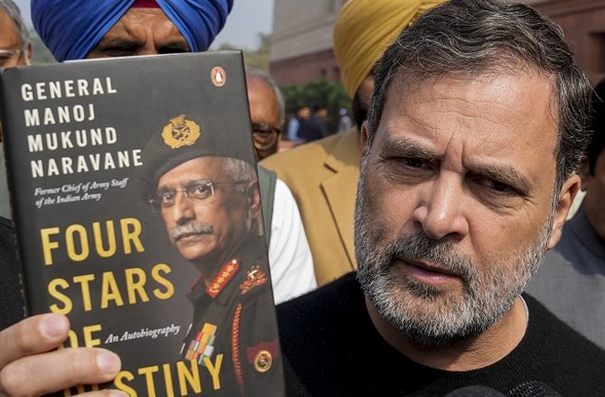 نئی دہلی، 4 فروری (ہ س)۔ اپوزیشن لیڈر راہل گاندھی نے بدھ کو پارلیمنٹ کے باہر سابق آرمی چیف منوج مکند نرو نے کی ایک غیر مطبوعہ کتاب کو دکھاتے ہوئے حکمراں پارٹی کو نشانہ بنایا۔ انہوں نے مبینہ طور پر کتاب کی تفصیلات پر چین کے ساتھ 2020 کے فوجی تعطل کے دوران ہونے والے واقعات کو بنیاد بنایا اور حکومت پر مشکل وقت میں فوج کو چھوڑنے کا الزام لگایا۔راہل گاندھی نے پارلیمنٹ کے مکر دوار کے باہر نرو نے کی غیر مطبوعہ کتاب کی کاپی دکھاتے ہوئے کہا کہ ہندوستان کے ہر نوجوان کو یہ کتاب دیکھنا چاہیے۔ اس میں انہوں نے لداخ کا مکمل احوال دیا ہے۔ انہیں اس کتاب کے مواد کو لوک سبھا میں پیش کرنے کی اجازت نہیں دی جارہی ہے۔راہل گاندھی نے کل لوک سبھا اسپیکر اوم برلا کو ایک خط لکھ کر اپوزیشن لیڈر کو پارلیمنٹ میں قومی سلامتی سے متعلق مسائل اٹھانے کے حق سے محروم کئے جانے پر ناراضگی کا اظہار کیا۔دریں اثنا، کانگریس ایم پی پرینکا گاندھی واڈرا نے راہل گاندھی کی حمایت کرتے ہوئے کہا کہ وہ اکثر تقریر کرتے وقت کتابوں سے حوالہ دیتے ہیں۔ راہل گاندھی ایک شائع شدہ حوالے سے نقل کر رہے تھے۔ وزیر اعظم نے سنجے بارو کا بھی حوالہ دیا۔اس دوران مرکزی وزیر گری راج سنگھ نے کہا کہ راہل گاندھی جھوٹ بول رہے ہیں۔ اگر ان میں ہمت ہے تو وہ مطالبہ کریں کہ ہمارے خلاف توہین عدالت کا مقدمہ درج کیا جائے۔ اپوزیشن لیڈر راہل گاندھی کے خط کے بارے میں جس میں الزام لگایا گیا تھا کہ انہیں لوک سبھا میں بولنے کی اجازت نہیں دی گئی، مرکزی وزیر کرن رجیجو نے کہا کہ انہیں جواب دیا گیا ہے۔ وہ اصولوں سے ہٹ کر بول رہے ہیں ۔ ہم نے دو دن انتظار کیا لیکن دوسروں کو بھی بولنے دیا جائے۔ وہ من مانی بات نہیں کر سکتے۔ یہ بھارت کا پارلیمنٹ ہے۔دریں اثناء پارلیمنٹ کے مکر دوار پر کل غیرمتوقع رویہ اختیار کرنے پر معطل کئے گئے ارکان پارلیمنٹ نے آج احتجاج کیا۔ احتجاج کے دوران لوک سبھا میں اپوزیشن لیڈر راہل گاندھی اور مرکزی وزیر رونیت سنگھ بٹو کے درمیان پارلیمنٹ کمپلیکس میں گرما گرم تبادلہ ہوا۔
