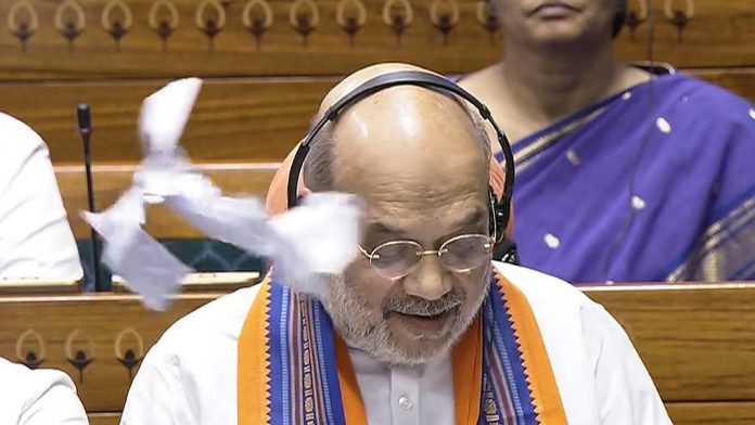 اپوزیشن کا ہنگامہ؛ بل کی نقل پھاڑدی ، امت شاہ کی جانب پھینکے کاغذ