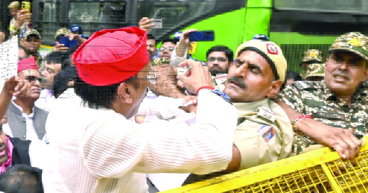 نئی دہلی، 11 اگست (یو این آئی) کانگریس اور دیگر اپوزیشن جماعتوں کے ارکان نے ووٹر لسٹ کی تیاری میں مبینہ دھاندلی کے خلاف پیر کو پارلیمنٹ ہاؤس سے الیکشن کمیشن تک مارچ کیا۔دہلی پولیس نے اپوزیشن کے اس مارچ کو درمیان میں ہی روک دیا۔ اس دوران سماج وادی پارٹی کے لیڈر اکھلیش یادو اور کچھ دیگر ارکان نے پولیس بریکیڈ کو عبور کرنے کی کوشش کی۔پولیس نے مارچ میں شامل کئی اپوزیشن رہنماؤں کو امتناعی احکامات کی خلاف ورزی کے الزام میں کچھ وقت کے لیے حراست میں لیا۔ انہیں ایک بس میں سنسد مارگ پولیس اسٹیشن لے جایا گیا۔ بس میں سوار لیڈروں میں لوک سبھا میں حزب اختلاف راہل گاندھی، رکن پارلیمنٹ پرینکا گاندھی ، شیو سینا (ادھو بالا صاحب ٹھاکرے) کے سنجے راوت، ترنمول کانگریس کی ساگریکا گھوش اور سینکڑوں دیگر اراکین اسمبلی احتجاج میں شامل تھے۔ ان کے ہاتھوں میں ووٹر لسٹوں کے خصوصی جامع نظرثانی (ایس آئی آر) کے خلاف بینرز اور پوسٹر بھی تھے۔مسٹر گاندھی نے میڈیا سے کہا ’’یہ لڑائی سیاسی نہیں ہے، یہ آئین کو بچانے کی لڑائی ہے۔‘‘انہوں نے کہا’’ہم ’ایک شخص ایک ووٹ‘ کی لڑائی لڑ رہے ہیں۔ ہم ایک صاف ستھری ووٹر لسٹ چاہتے ہیں۔‘‘پولیس بس میں بٹھانے کے بعد محترمہ گاندھی نے میڈیا سے کہا ’’یہ حکومت ڈری ہوئی ہے۔‘‘اس سے قبل اپوزیشن انڈیا الائنس کے ارکان، پارلیمنٹ ہاؤس کمپلیکس میں مکر دوار پر جمع ہوئے اور احتجاج کیا اور وہاں سے الیکشن کمیشن ہیڈ کوارٹر کی طرف پیدل مارچ شروع کردیا۔ دہلی پولیس نے انہیں پارلیمنٹ ہاؤس کے باہر روک دیا۔ پولیس نے راستے کی بریکیڈنگ کررکھی تھی ۔پولیس کی مداخلت پر اپوزیشن ارکان نے سڑک پر احتجاج شروع کر دیا۔ اس دوران ارکان پارلیمنٹ اور دہلی پولیس کے درمیان ہلکی نوک جھونک ہوئی۔پولیس نے حفاظتی وجوہات کی بنا پر علاقے میں امتناعی احکامات کا حوالہ دیتے ہوئے ان سے مزید آگے نہ بڑھنے کی درخواست کی۔ مظاہرین میں کانگریس کے صدر ملکارجن کھڑگے، نیشنلسٹ کانگریس پارٹی (شرد پوار) کے شرد پوار، سپریا سولے، آزاد پپو یادو، کانگریس کی کماری سیلجا اور اپوزیشن پارٹیوں کے دیگر اراکین پارلیمنٹ کی بڑی تعداد شامل تھی۔