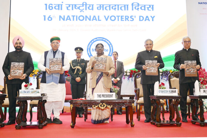 نئی دہلی، 25 جنوری (ہ س):۔ صدر جمہوریہ دروپدی مرمو نے 16 ویں رائے دہندگان کے قومی دن (این وی ڈی-2026) پر ملک بھر کے ووٹروں کو اپنی مبارکباد پیش کی، اور خاص طور پر نوجوان اور خواتین ووٹروں کو مبارکباد دی۔ انہوں نے کہا کہ ہمارے ملک میں ووٹرز کی تعداد 95کروڑ سے زیادہ ہے۔ ہماری جمہوریت کی مضبوطی صرف تعداد کی وسعت میں ہی نہیں بلکہ جمہوری جذبے کی گہرائی میں بھی ہے۔صدر دروپدی مرمو نے اتوار کو یہاں زوراور اسٹیڈیم مانک شاہ سنٹر میں منعقدہ این وی ڈی-2026 تقریب سے خطاب کرتے ہوئے کہا کہ یہ انمول حق تمام نوجوان ووٹروں کو جنہوں نے ووٹر شناختی کارڈ حاصل کیے ہیں انہیں دنیا کی سب سے بڑی اور متحرک جمہوریت میں فعال طور پر حصہ لینے کا موقع فراہم کرتا ہے۔ تقریب کا تھیم “میرا بھارت، میرا ووٹ” تھا اور ٹیگ لائن تھی “ہندوستانی جمہوریت کے مرکز میں شہری”۔ انہوں نے خواتین ووٹرز کو خصوصی مبارکباد دیتے ہوئے کہا کہ مائیں، بہنیں اور بیٹیاں بڑی تعداد میں ووٹ ڈال کر ہماری جمہوریت کو مضبوط کر رہی ہیں۔ بوڑھے، معذور اور دور دراز علاقوں میں رہنے والے ووٹرز بھی اپنا حق رائے دہی استعمال کرتے ہیں۔ ووٹنگ محض سیاسی اظہار کی ایک شکل نہیں ہے بلکہ جمہوری عمل پر اعتماد کی علامت ہے۔