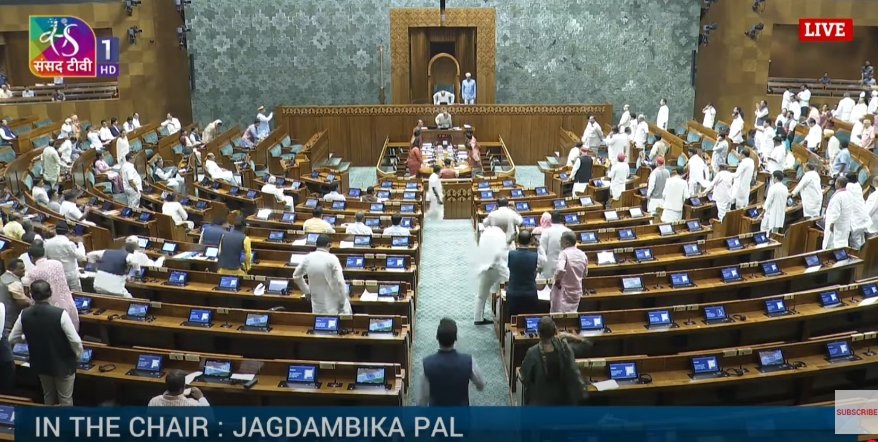 اس دوران بھارتیہ جنتا پارٹی کے رکن انوراگ شرما نے کین-بیتوا ندی کو جوڑنے کے منصوبے سے متعلق ضمنی سوالات پوچھے، جس کا جواب مرکزی وزیر ماحولیات بھوپیندر یادو نے دیا۔ لیکن اپوزیشن کی ہنگامہ آرائی کے باعث اسپیکر نے ایوان کی کارروائی دوپہر 12 بجے تک ملتوی کر دی۔دوپہر 12 بجے ایوان دوبارہ شروع ہوا لیکن اپوزیشن ارکان نے ہنگامہ آرائی جاری رکھی، ’ایس آئی آر واپس لو‘ اور ’جمہوریت کا قتل بند کرو‘ جیسے نعرے لگائے۔ اس دوران صدارتی چیئرپرسن سندھیا رائے نے ضروری کاغذات ایوان کی میز پر رکھے۔