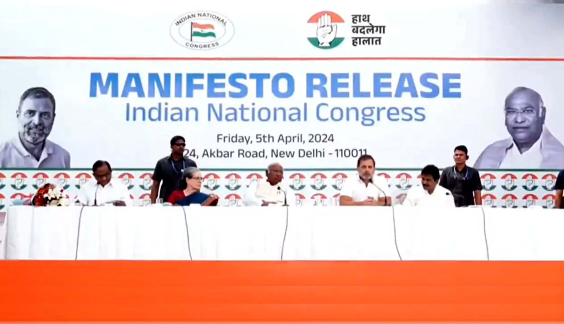 کانگریس صدر ملکارجن کھڑگے، پارلیمانی پارٹی کی لیڈر سونیا گاندھی، پارٹی کے سابق صدر راہل گاندھی، منشور کمیٹی کے چیئرمین پی چدمبرم اور پارٹی کے جنرل سکریٹری تنظیم کے سی وینوگوپال نے جمعہ کو یہاں پارٹی ہیڈکوارٹر میں مشترکہ طور پر کانگریس کا منشور جاری کرتے ہوئے کہا کہ منشور انصاف کی گارنٹی دیتا ہے، اس لیے اسے ’نیائے پتر‘ کہا گیا ہے۔ اس میں تمام اہل وطنوں سے انصاف کا وعدہ کیا گیا ہے اور لوگوں کو یقین دلایا گیا ہے کہ کانگریس کو ووٹ دینے سے پورے ملک کے حالات بدل جائیں گے۔