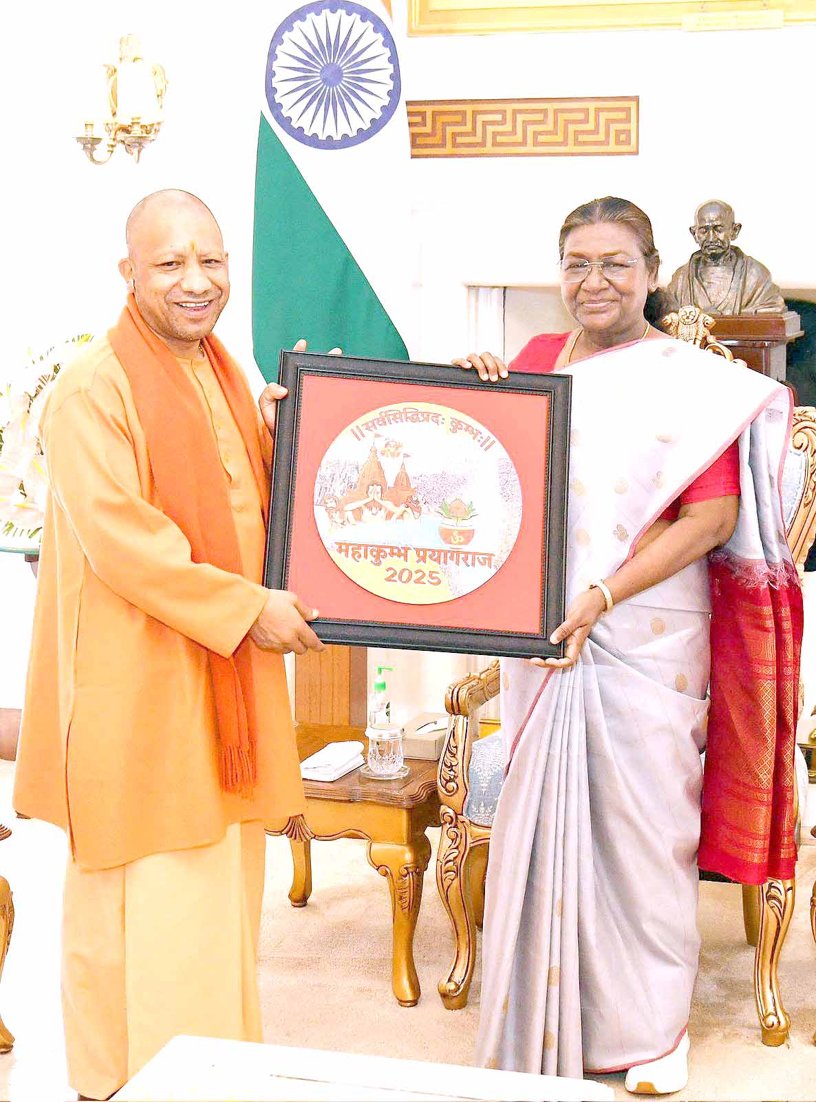 نئی دہلی، 29 دسمبر (یو این آئی) اتر پردیش کے وزیر اعلی یوگی آدتیہ ناتھ نے اتوار کو صدر جمہوریہ ہند دروپدی مرمو کو مہاکمبھ 2025 کے لئے مدعو کیا۔یوگی آدتیہ ناتھ نے راشٹرپتی بھون میں محترمہ مرمو سے ملاقات کی۔وزیر اعلیٰ نے صدر جمہوریہ کو مہاکمبھ 2025 کے لئے مدعو کیا اور انہیں مہاکمبھ کی علامت کا نشان پیش کیا۔ وزیر اعلیٰ نے مہاکمبھ 2025 کی علامتی نشان دئے جس میں ایک شال، شری پھل کی نقل اور دیگر نشانات شامل ہیں۔اس موقع پر وزیر اعلیٰ نے کہا کہ اپنا قیمتی وقت دینے کے لیے دل کی گہرائیوں سے شکریہ۔ محترمہ صدر جمہوریہ جی۔ یوگی آدتیہ ناتھ نے ہفتہ کے روز سابق صدر رام ناتھ کووند، بھارتیہ جنتا پارٹی کے صدر جگت پرکاش نڈا، مرکزی وزیر داخلہ امت شاہ اور میزورم کے گورنر وی کے سنگھ کو بھی مہاکمبھ 2025 میں آنے کی دعوت دی تھی۔