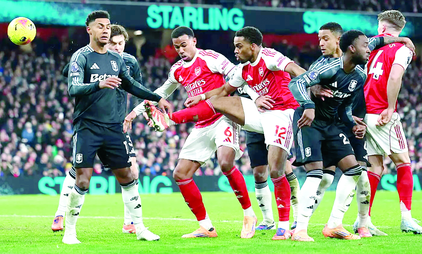 لندن، 31 دسمبر ( یو این آئی )آرسنل نے دوسرے ہاف کے آغاز میں شاندار کھیل پیش کرتے ہوئے آسٹن ولا کو 4-1 سے شکست دے کر انگلش پریمیئر لیگ کی پوائنٹس ٹیبل پر مانچسٹر سٹی سے اپنی برتری پانچ پوائنٹس تک بڑھا دی۔پہلے ہاف کے بعد میچ 48ویں منٹ میں اس وقت جان دار ہو گیا جب آسٹن ولا کے گول کیپر ایمیلیانو مارٹینیز بوکایو ساکا کا کارنر صحیح طرح کلیئر نہ کر سکے اور گیند گیبریل ماگالہائس سے ٹکرا کر جال میں جا پہنچی۔چار منٹ بعد مارٹن اوڈیگارڈ نے شاندار پاس کے ذریعے مارٹن زوبی میندی کو گول کا موقع دیا، جنہوں نے آرسنل کی برتری دگنی کر دی۔ 69ویں منٹ میں لیانڈرو ٹروسارڈ نے لوکاس ڈینیے کی غلطی سے فائدہ اٹھاتے ہوئے تیسرا گول داغا۔گیبریل جیزس نے چوتھا گول کر کے اپنی مکمل فٹنس کا اعلان کیا اور یوں آسٹن ولا کی 11 میچوں پر مشتمل مسلسل فتوحات کا سلسلہ ختم ہو گیا۔ اگرچہ اولی واٹکنز نے 94ویں منٹ میں ولا کے لیے تسلی بخش گول کیا۔دوسری جانب، چیلسی کو خطاب کی دوڑ میں مزید دھچکا لگا جب وہ اپنے ہوم گراؤنڈ پر بورن ماؤتھ کے خلاف 2-2 سے ڈرا پر اکتفا کرنے پر مجبور ہوئی۔