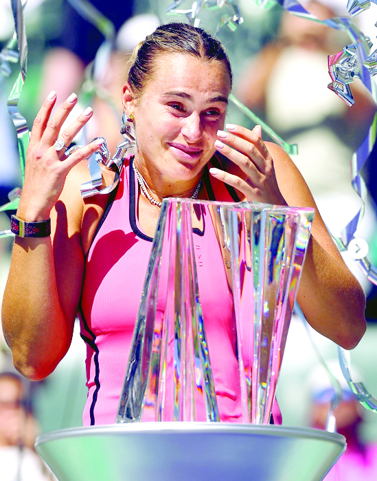 انڈین ویلز، کیلیفورنیا،16 مارچ (یواین آئی ) دنیا کی نمبر ون ٹینس اسٹار آرینا سابالینکا نے ایک اعصاب شکن مقابلے کے بعد ایلینا ریباکینا کو شکست دے کر پہلی بار انڈین ویلز کا تاج اپنے سر سجا لیا۔ اتوار کو کھیلے گئے اس فائنل میں سابالینکا نے شاندار واپسی کرتے ہوئے اپنی حریف کو زیر کیا۔کیلیفورنیا کے تپتے ہوئے صحرائی موسم میں سابالینکا نے 3-6، 6-3، اور 7-6 (8/6) سے کامیابی حاصل کی۔ سابالینکا، جو 2023 اور 2025 میں رنرز اپ رہی تھیں، تیسرے سیٹ میں ایک موقع پر میچ ختم کرنے کے قریب تھیں لیکن ریباکینا نے بریک پوائنٹ حاصل کر کے مقابلہ ٹائی بریکر تک پہنچا دیا۔ ٹائی بریکر میں ریباکینا کو ‘چیمپئن شپ پوائنٹ حاصل تھا، لیکن سابالینکا نے بہترین بیک ہینڈ شاٹ کے ذریعے واپسی کی اور بالآخر فتح سمیٹی۔میچ کے بعد ٹینس چینل کو انٹرویو دیتے ہوئے بیلاروس سے تعلق رکھنے والی 27 سالہ کھلاڑی کا کہنا تھا”میرا پورا ارادہ یہ تھا کہ ذہنی طور پر مضبوط رہوں اور اپنی باڈی لینگویج سے یہ ظاہر کروں کہ میں یہاں لڑنے کے لیے آئی ہوں۔ میں خوش ہوں کہ میری حکمت عملی کام کر گئی۔ میں اس جیت کو زندگی بھر یاد رکھوں گی۔”دونوں کھلاڑیوں کے درمیان یہ 16واں مقابلہ تھا، جس میں اب سابالینکا کو 9-7 کی برتری حاصل ہو گئی ہے۔ سابالینکا کیلئےیہ عرصہ خوشیوں بھرا رہا ہے، جس میں ان کی منگنی اور اب یہ اہم ٹائٹل شامل ہے۔ سابالینکا اب میامی اوپن کیلئےروانہ ہوں گی جہاں وہ اپنے ٹائٹل کا دفاع کرنے کیلئےپرعزم ہیں۔
