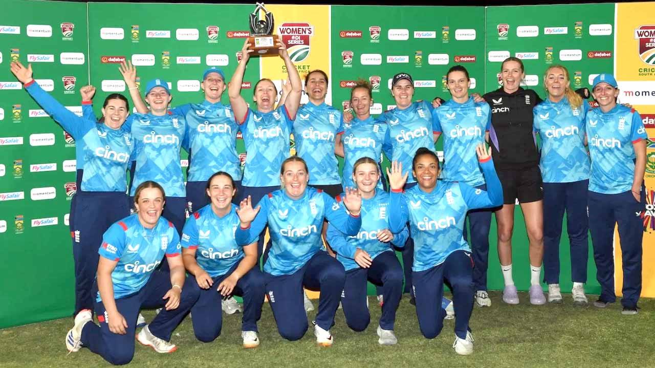پوٹچفسٹروم (جنوبی افریقہ) 12 دسمبر (یو این آئی) گیند بازوں کی شاندار کارکردگی کے بعد ٹمی بومونٹ (ناٹ آؤٹ 65)، ایمی جونز (ناٹ آؤٹ 49) کی شاندار اننگز کی بدولت انگلینڈ کی خواتین ٹیم نے بارش سے متاثرہ ون ڈے میچ میں ڈک ورتھ لوئس قوانین (ڈی ایل ایس) کے تحت تیسرے ون ڈے میں جنوبی افریقہ کو چھ وکٹ سے شکست دے دی۔ اس کے ساتھ ہی انگلینڈ نے تین میچوں کی سیریز بھی 2-1 سے جیت لی ہے۔234 رن کے ہدف کے تعاقب میں انگلینڈ کا آغاز اچھا نہیں رہا اور 25 کے اسکور پر اس کی تین وکٹیں گر گئیں۔ مایا باؤچیئر (چار)، نیٹ سکیور برنٹ (صفر) اور ہیدر نائٹ (چھ) رن بنانے کے بعد آؤٹ ہوئیں۔ ڈینیئل وائٹ 16 گیندوں پر 22 رن بنانے کے بعد چوتھی وکٹ کے طور پر آؤٹ ہوئی۔ اس کے بعد ٹیمی بیومونٹ اور ایمی جونز نے اننگز کو سنبھالا اور تیزی سے رن بنائے۔ دونوں بلے بازوں کے درمیان 63 گیندوں میں 90 رن کی اہم شراکت داری ہوئی، ٹیمی بیومونٹ نے اپنی 46 رن کی اننگز میں 10 چوکے لگائے۔ انہیں ان کی شاندار اننگز پر ‘پلیئر آف دی میچ ‘ سے نوازا گیا۔ ایمی جونز نے 36 گیندوں میں چھ چوکوں کی مدد سے رن (ناٹ آؤٹ 49) بنائے۔ جب 19ویں اوور کے بعد بارش کی وجہ سے کھیل روکا گیا تو انگلینڈ نے چار وکٹ پر 153 رن بنالئے تھے۔ مسلسل بارش کی وجہ سے انگلینڈ کو ڈی ایل ایس میتھڈ کے ذریعے چھ وکٹ سے فاتح قرار دیا گیا۔ جنوبی افریقہ کی جانب سے ماریجان کپ نے تین وکٹیں حاصل کیں۔ کلوئی ٹراین نے ایک بلے باز کو آؤٹ کیا۔ انگلینڈ کی شارلٹ ڈین کو سیریز میں بہترین کارکردگی پر ‘پلیئر آف دی سیریز ‘ سے نوازا گیا۔اس سے قبل انگلینڈ کی خواتین ٹیم نے ٹاس جیت کر پہلے گیند بازی کا فیصلہ کیا۔ بیٹنگ کے لیے آئی جنوبی افریقہ کی اوپننگ جوڑی کی کپتان لورا وولوارڈٹ اور لارا گڈال نے شاندار آغاز کیا اور پہلی وکٹ کے لیے 50 رن جوڑے۔ لارین بیل نے لارا گڈال (17) کو آؤٹ کر کے انگلینڈ کو پہلی کامیابی دلائی۔ کپتان لورا وولوارڈٹ نے 68 گیندوں میں (61)، اینیک بوش (19)، نادین ڈی کلارک (14)، ماریجان کپ (38) اور جلو ٹرین نے (20) رن بنائے۔ میک ڈی رائڈر (19) اور این ملابا (16) رنز بنانے کے بعد ناٹ آؤٹ رہیں۔ جنوبی افریقہ کی ٹیم نے مقررہ 50 اووروں میں آٹھ وکٹ پر 233 رن بنائے۔ انگلینڈ کی جانب سے ایلس کیپسی، چارلی ڈین اور سوفی ایکلسٹون نے 2-2 وکٹیں حاصل کیں۔ لارین بیل نے ایک وکٹ حاصل کی۔