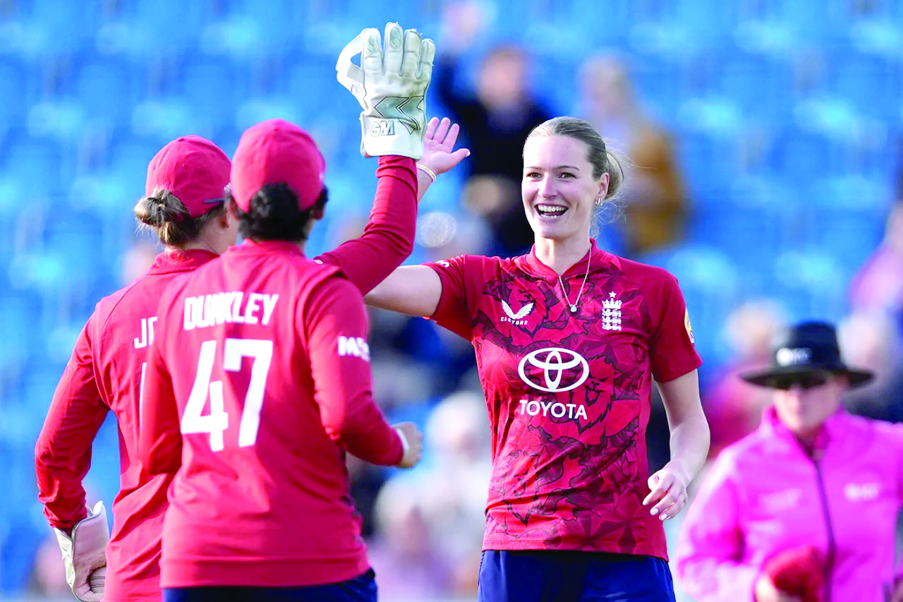 لندن، 24 مئی (یواین آئی) انگلینڈ نے ہوو میں ویسٹ انڈیز کو نو وکٹوں سے شکست دے کر کر ٹی 20 سیریز میں دو-صفر کی ناقابل تسخیر برتری حاصل کر لی ہے۔صرف 82 رن کے ہدف کا تعاقب کرتے ہوئے، انگلینڈ نے جمعہ کو کپتان نیٹ سائیور-برنٹ کی 31 گیندوں پر ناٹ آوٹ 55 اور صوفیہ ڈنکلے کے ناٹ آوٹ 24 رن کی مدد سے 9.2 اوورز میں ہی ہدف حاصل کر لیا۔ ڈینی وائٹ-ہوج اننگز کی پہلی گیند پر آؤٹ ہو گئی تھیں۔ویسٹ انڈیز نے اپنے چار وکٹ صرف 29 رنز پر گنوا دیے تھے اور آخر کار وہ نو وکٹوں پر 81 رنز کا معمولی ا سکور ہی بنا سکی۔ تیز گیند باز ایم ارلٹ نے اپنے دوسرے بین الاقوامی میچ میں 14 رنز دے کر 3 وکٹ لیے، جن میں ویسٹ انڈیز کی کپتان ہیلی میتھیو کے چھ اور تجربہ کار بلے باز اسٹیفنی ٹیلر (صفر) کے اہم وکٹ شامل ہیں۔ تیز گیند باز لارین بیل نے 28 رنز دے کر 3 وکٹ لیے اور اسپنر چارلی ڈین نے اپنے چار اوورز میں 12 رنز دے کر 2 وکٹ حاصل کیے۔ویسٹ انڈیز کی طرف سے شیمائن کیمپبیل اور شبیکا گجنبی ہی دوہرے ہندسے تک پہنچ سکیں اور انہوں نے بالترتیب 26 اور 22 رنز بنائے اور ان کی پوری اننگز میں صرف آٹھ چوکے لگے، جن میں 74 ڈاٹ بالز بھی شامل ہیں۔ تیسرا اور آخری ٹی 20 پیر کو چیمسفورڈ میں ہوگا۔