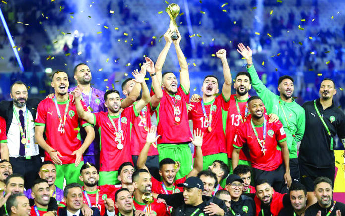 دوحہ ، 19 دسمبر(یو این آئی) مراکش نے ایک سنسنی خیز فائنل میں اردن کو اضافی وقت میں شکست دے کر فیفا عرب کپ 2025 کا تاج اپنے سر سجا لیا۔ قطر میں کھیلے گئے اس تاریخی میچ نے مراکش کی فٹ بال تاریخ میں ایک اور سنہری باب کا اضافہ کر دیا جہاں انہوں نے 2022 کے فیفا ورلڈ کپ میں سیمی فائنل تک رسائی حاصل کر کے عالمی سطح پر نام کمایا تھا۔مراکش اور اردن کے درمیان عرب کپ کے فائنل میچ نے 2022 کے ورلڈ کپ فائنل کی یاد دلا دی، مراکش نے دو بار خسارے میں جانے کے باوجود اردن کو پہلا عرب کپ جیتنے سے روکا اور شاندار انداز میں ٹرافی اٹھائی۔عثامہ تنان نے اٹلس لائنز کو ایک شاندار طویل فاصلے کے گول کے ساتھ برتری دلائی، تاہم اردن نے دوسرے ہاف میں ٹورنامنٹ کے ٹاپ اسکورر علی اولوان کے ذریعے شاندار جواب دیا۔فارورڈ نے دوبارہ شروع ہونے کے تین منٹ بعد ہی برابر کر دیا، محند ابو طحہ کی جلدی سے لی گئی کارنر کے بعد قریب سے ہیڈنگ کر کے گول کیا۔ہاف کے وسط میں اردن کو پنالٹی دی گئی جس میں الوان نے گول کر کے اردن کو دوبارہ برتری دلا دی۔مراکش نے برابری کی تلاش میں بے حد دباؤ ڈالا اور وقت ختم ہونے سے دو منٹ پہلے ایک کارنر حمد اللہ کے پاس آیا، جنہوں نے قریب سے گول کر دیا۔ اضافی وقت کے 100 ویں منٹ میں حمد اللہ نے گول کر کے اپنی ٹیم کو 3-2 کی فیصلہ کن برتری دلائی، جس کے بعد مراکشی شائقین میں جشن کا آغاز ہو گیا۔ دن کے آغاز میں، سعودی عرب اور یو اے ای کے درمیان تیسری پوزیشن کا میچ خراب موسم کی وجہ سے غیر معینہ مدت کے لیے ملتوی کر دیا گیا، فیفا نے تصدیق کی کہ تیسری پوزیشن کا فیصلہ متعلقہ کمیٹی کی جانب سے مناسب وقت پر کیا جائے گا۔طارق سکتوئی کی زیرِ نگرانی مراکش کی ٹیم پورے ٹورنامنٹ میں بہترین دفاعی لائن کے ساتھ کھیلی جس نے فائنل سے پہلے پورے ٹورنامنٹ میں صرف ایک گول کھایا تھا۔ دوسری جانب اردن کی ٹیم نے بھی متاثر کن کارکردگی دکھائی جو آئندہ سال پہلی بار فیفا ورلڈ کپ میں شرکت کرے گی۔یہ ٹورنامنٹ قطر کے قومی دن کے موقع پر اختتام پذیر ہوا جس نے خلیجی ریاست میں فٹ بال کے ایک شاندار سیزن کو مکمل کیا۔فیفا عرب کپ 2025 میں عرب دنیا کی 16 افریقی اور ایشیائی ٹیموں نے حصہ لیا اور تمام میچز ان 6 سٹیڈیمز میں کھیلے گئے جو 2022 کے ورلڈ کپ کی میزبانی کر چکے تھے۔ اٹلس لائنز (مراکش) کی یہ فتح ان کی فٹ بال کی دنیا میں مسلسل بڑھتی ہوئی برتری کا ثبوت ہے۔