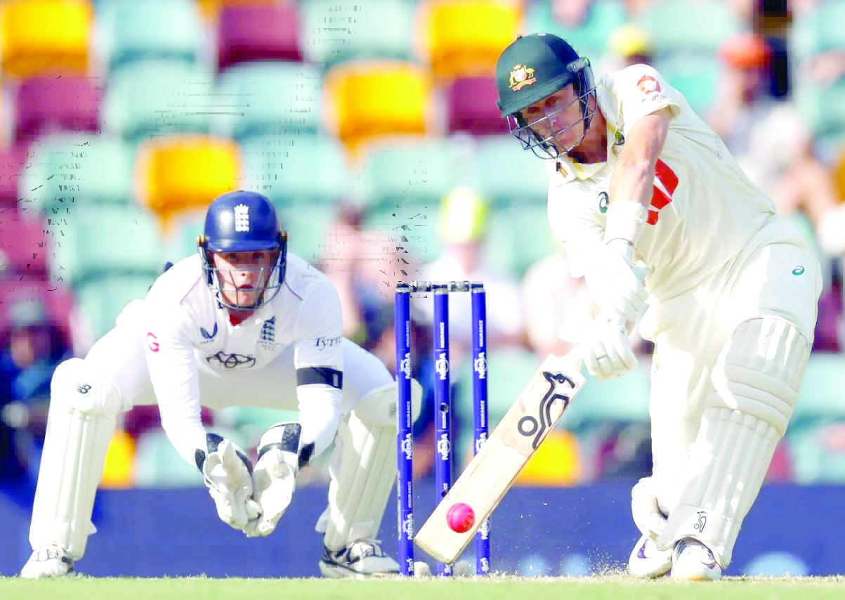 برسبین، 05 دسمبر (یواین آئی) جیک ویدرالڈ (72)، مارنس لابوشین (65) اور کپتان اسٹیو اسمتھ (61) کی شاندار نصف سنچریوں کی بدولت آسٹریلیا نے ایشیز سیریز کے ڈے نائٹ دوسرے ٹیسٹ کے دوسرے دن انگلینڈ کے خلاف اسٹمپز تک چھ وکٹ کے نقصان پر 378 رنز بنا کر 44 رنز کی برتری حاصل کر لی اور میچ پر اپنی مضبوط گرفت قائم کر لی ہے۔یہاں انگلینڈ نے اپنی پہلی اننگز کل کے نَو وکٹ پر 325 رن سے آگے بڑھائی۔ صبح کے سیشن میں برینڈن ڈوگٹ نے جوفرا آرچر کو آؤٹ کرکے انگلینڈ کی اننگز 76.2 اوور میں 334 رنز پر ختم کر دی۔ جو روٹ نے 206 گیندوں پر 15 چوکوں اور ایک چھکے کی مدد سے ناٹ آؤٹ 138 رنز کی شاندار اننگز کھیلی۔آسٹریلیا کی جانب سے مچل اسٹارک نے چھ وکٹیں حاصل کیں، جبکہ مائیکل نیسر، برینڈن ڈوگٹ اور اسکاٹ بولینڈ نے ایک، ایک کھلاڑی کو آؤٹ کیا۔اس کے بعد بلے بازی کے لیے اتری آسٹریلیا کو ٹریوس ہیڈ اور جیک ویڈرالڈ کی اوپننگ جوڑی نے مضبوط آغاز دلایا اور پہلے وکٹ کے لیے 77 رنز کی شراکت قائم کی۔ 14ویں اوور میں بریڈن کارس نے ٹریوس ہیڈ کو 33 رنز پر آؤٹ کرکے آسٹریلیا کو پہلا دھچکا دیا۔ نمبر تین پر آنے والے بیٹر مارنس لابوشین نے ویڈرالڈ کے ساتھ مل کر مزید 69 رنز جوڑے، لیکن26ویں اوور میں جوفرا آرچر نے جیک ویڈرالڈ کو ایل بی ڈبلیو کرکے پویلین بھیج دیا۔جیک ویڈرولڈ نے 78 گیندوں پر 12 چوکوں اور ایک چھکے کی مدد سے 72 رنز بنائے۔ مارنس لابوشین نے بھی نو چوکوں اور ایک چھکے کی مدد سے 65 رنز کی شاندار اننگ کھیلی۔ کپتان اسٹیو اسمتھ نے 85 گیندوں میں پانچ چوکوں اور دو چھکوں کے ساتھ 61 رنز کی نصف سنچری اننگز کھیلی۔ کیمرون گرین نے 45 رنز بنائے، جبکہ جاش انگلِس 23 رنز بنا کر آؤٹ ہوئے۔دن کا کھیل ختم ہونے تک آسٹریلیا نے اپنی پہلی اننگز میں چھ وکٹ پر 378 رنز بنا کر انگلینڈ کے خلاف 44 رنز کی برتری حاصل کر لی ہے۔ کریز پر الیکس کیری 45 رنز ناٹ آؤٹ اور مائیکل نیسر 15 رنز ناٹ آؤٹ موجود تھے۔انگلینڈ کی جانب سے برائیڈن کارس نے تین وکٹیں حاصل کیں، جبکہ کپتان بین اسٹوکس نے دو کھلاڑیوں کو آؤٹ کیا۔ جوفرا آرچر نے ایک وکٹ اپنے نام کی۔