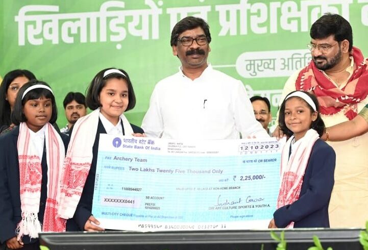 رانچی: رانچی کے کھیل گاوں میگا اسپورٹس کمپلیکس میں واقع تانا بھگت انڈور اسٹیڈیم میں 21 کھیلوں کے 222 کھلاڑیوں اور 15 کھیلوں کے 52 کوچوں میں 4 کروڑ 95 لاکھ روپے کا نقد انعام تقسیم کیا گیا۔ ان میں کھلاڑیوں کو 4 کروڑ 46 لاکھ روپے اور کوچز کو 48 لاکھ 46 ہزار روپے کا نقد انعام دیا گیا۔ مہمان خصوصی کے طور پر سی ایم ہیمنت سورین، وزیر کھیل حفیظ الحسن، ایم پی مہوا ماجی، اسپورٹس سکریٹری منوج کمار، اسپورٹس ڈائریکٹر سوشانت گوراو، ایس ایس پی رانچی چندن کمار سنہا سمیت کھیلوں سے وابستہ لوگ اور کھلاڑی موجود تھے۔