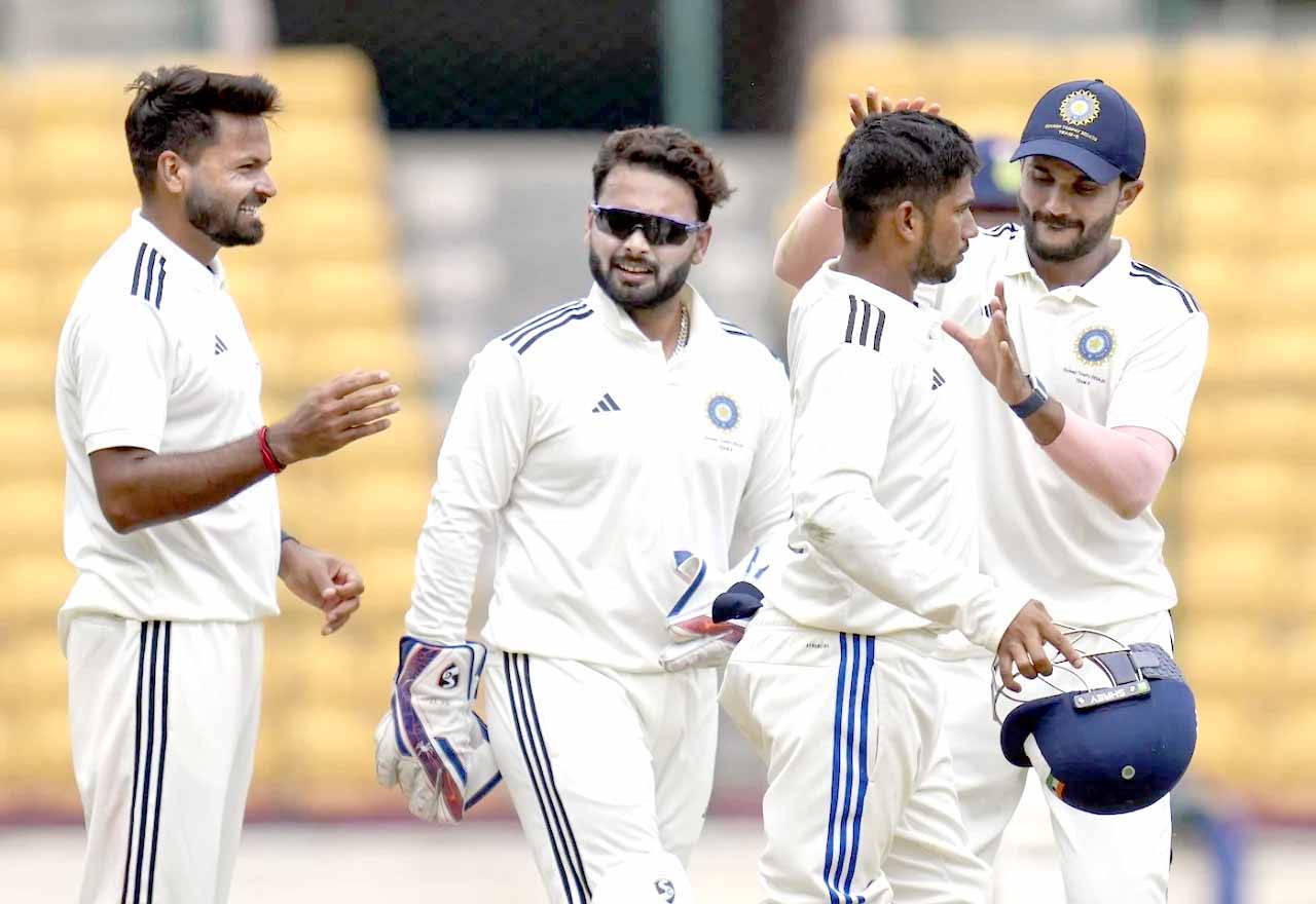اس سے قبل رشبھ پنت (61) اور سرفراز خان (46) کی جدوجہد بھری اننگز کی مدد سے انڈیا بی نے ہفتہ کو دلیپ ٹرافی کے سنسنی خیز مقابلے کے تیسرے دن انڈیا اے کے خلاف چھ وکٹوں پر 150 رن بنا کر 240 رن کی اہم سبقت حاصل کر لی تھی۔انڈیا بی کے واشنگٹن سندر ایم چناسوامی اسٹیڈیم میں گیند باز کے لئے مددگار پچ پر تیسرے دن کے کھیل کے اختتام پر چھ رن بنانے کے بعد کریز پر موجود تھے۔انڈیا بی کی اننگز کی خاص بات رشبھ پنت کی 47 گیندوں میں 61 رن کی دھماکہ خیز اننگز تھی۔ انہوں نے یہ رن نو چوکوں اور دو چھکوں کی مدد سے بنائے۔ پنت نے اپنے فطری کھیل کا مظاہرہ ایسے وقت میں کیا جب انڈیا بی اپنی گرفت گنواتی نظر آرہی تھی۔ وہ آف اسپنر تنوش کوٹین کا شکار بنے، لیکن ان کی اننگز نے ابتدائی دھچکوں کے بعد اننگز کو انتہائی ضروری رفتار فراہم کی۔سرفراز خان نے 36 گیندوں پر 46 رن کی زبردست اننگز کھیلی۔ وہ اویش خان کی تیز گیند کو چھونے کی کوشش میں وکٹ کیپر دھرو جورل کے ہاتھوں آؤٹ ہو گئے۔اس سے قبل انڈیا اے پہلی اننگز میں 90 رن سے پیچھے ہوتے ہوئے 231 رن پر آل آؤٹ ہو گئی تھی۔ تنوش کوٹین (32) اور آکاش دیپ (11) نے تاہم کچھ دیر تک جدوجہد کی۔ خلیل احمد آخری کھلاڑی کے طور پر آؤٹ ہوئے۔انڈیا بی کے اوپنر یشسوی جیسوال اور ابھیمنیو ایشورن سستے میں آؤٹ ہو گئے۔ ایک وقت میں انڈیا بی 22 رن پر تین وکٹ گنوانے کے بعد مشکل میں نظر آرہی تھی لیکن پنت اور سرفراز نے اننگز کو آگے بڑھایا۔