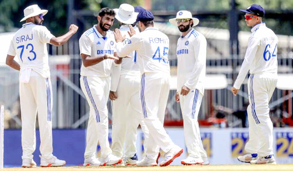چنئی، 20 ستمبر (یو این آئی) جسپریت بمراہ، محمد سراج، آکاش دیپ اور رویندر جڈیجہ کی چوکڑی نے جمعہ کو پہلے ٹیسٹ میچ کے دوسرے دن بنگلہ دیش کو 149 رنز پر آؤٹ کر دیا اور ہندوستان کو پہلی اننگ کی بنیاد پر 227 رنوں کی برتری دلادی۔بنگلہ دیش نے لنچ کے بعد تین وکٹ پر 26 سے آگے کھیلنا شروع کیا۔ 12ویں اوور میں محمد سراج نے کپتان نظم الحسن شانتو (20) کو آؤٹ کرکے ہندوستان کو چوتھی کامیابی دلائی۔ اس کے بعد بمراہ نے مشفق الرحیم (8) کو آؤٹ کیا۔ شکیب الحسن اور لٹن کمار داس نے کچھ دیر تک بنگلہ دیش کی اننگ کو سنبھالنے کی کوشش کی۔ شکیب الحسن (32) اور لٹن کمار داس (22) رویندرا جڈیجہ کا شکار بنے۔ حسن محمود (9) اور تسکین احمد (11) کو بمراہ نے آؤٹ کیا۔ 48ویں اوور میں محمد سراج نے ناہید رانا (11) کو آؤٹ کرکے بنگلہ دیش کی اننگ 149 کے اسکور پر سمیٹ دی۔ ہندوستان نے بنگلہ دیش کو فالو آن نہ دیتے ہوئے دوسری اننگ میں بیٹنگ کا فیصلہ کیا ہے۔ ہندوستان کی جانب سے جسپریت بمراہ نے چار وکٹیں حاصل کیں۔ محمد سراج، آکاش دیپ اور رویندرا جڈیجہ نے دو دو بلے بازوں کو آؤٹ کیا۔اس سے قبل بنگلہ دیش کے تیز گیند باز تسکین احمد اور حسن محمود نے صبح کے سیشن میں ہندوستانی اننگ کو 376 پر سمیٹ دیا تھا اور پہلے سیشن میں لنچ ٹائم تک بنگلہ دیش نے 26 کے اسکور پر تین وکٹیں گنوا دی تھیں۔آج ہندوستان نے کل کے چھ وکٹ پر 339 رن سے آگے کھیلنا شروع کیا۔ ٹیم کا اسکور ابھی 347 رنز تک پہنچا ہی تھا کہ تسکین احمد نے رویندر جڈیجہ کووکٹ کے پیچھے لٹن کے ہاتھوں کیچ کروا کر صبح کے سیشن کی پہلی وکٹ حاصل کی۔ جڈیجہ (86) اپنی سنچری مکمل نہ کر سکے۔ اس کے بعد بیٹنگ کے لیے آئے آکاش دیپ (17) کو بھی تسکین احمد نے شانتو کے ہاتھوں کیچ آؤٹ کرادیا۔ تسکین نے 91 ویں اوور میں روی چندرن اشون (113) کو آؤٹ کرکے ہندوستان کی بڑے اسکور کی امیدوں کو دھچکا دیا۔ 10ویں وکٹ کے شکل میں بمراہ (7) رنز بنانے کے بعد آؤٹ ہوئے۔ انہیں حسن محمود نے آؤٹ کیا۔ ہندوستانی اننگ 91.2 اوورز میں کل کے اسکور میں 37 رنز کا اضافہ کرکے 376 پر ختم ہوگئی۔بنگلہ دیش کی جانب سے حسن محمود نے پانچ وکٹیں حاصل کیں۔ تسکین احمد کو تین وکٹ ملے۔ مہدی حسن میراز اور شکیب الحسن نے ایک ایک بلے باز کو آؤٹ کیا۔