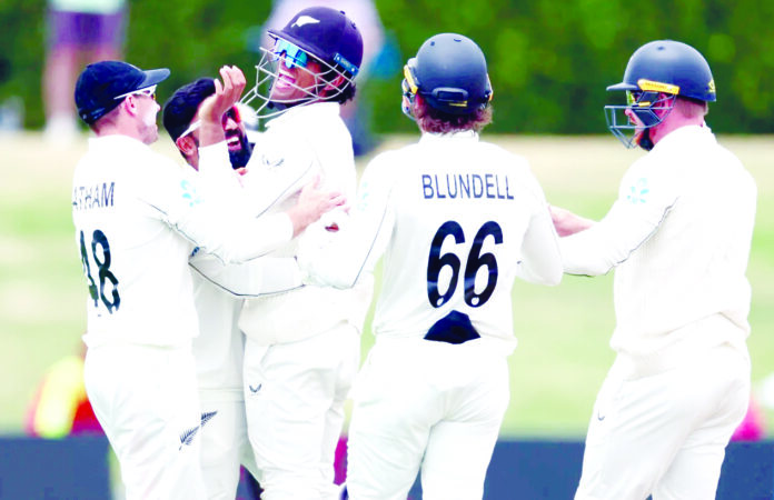 ماؤنٹ مائونگانوئی (نیوزی لینڈ)، 22 دسمبر (ہ س)۔ نیوزی لینڈ نے پیر کو ماؤنٹ مائونگانوئی میں کھیلے گئے تیسرے ٹیسٹ میچ میں ویسٹ انڈیز کو 323 رنوں سے شکست دے دی۔ اس فتح کے ساتھ کیویز نے سیریز 0-2 سے جیت لی ہے۔ جیکب ڈفی کی مہلک باؤلنگ اس میچ میں فیصلہ کن ثابت ہوئی، انہوں نے دوسری اننگز میں پانچ وکٹیں حاصل کیں۔ نیوزی لینڈ نے ویسٹ انڈیز کو جیت کے لیے 462 رنوں کا بڑا ہدف دیا لیکن مہمان ٹیم صرف 138 رن پر ڈھیر ہوگئی۔ ویسٹ انڈیز کی بیٹنگ لنچ سے پہلے اور بعد میں مکمل طور پر تباہ ہوگئی اور چائے کے فوراً بعد وہ صرف چار اوور میں ہی آل آؤٹ ہوگئی۔ڈفی نے 42 رن کے عوض 5 جبکہ اسپنر اعجاز پٹیل نے 23 رن کے عوض 3 وکٹیں حاصل کیں۔ دوسری اننگز میں ویسٹ انڈیز کی جانب سے اوپنر برینڈن کنگ نے سب سے زیادہ 67 رن بنائے۔پچ، دراڑوں سے چھلنی، ناہموار اچھال اور حرکت پذیر تھی، جس کا فائدہ ڈفی اور اعجاز نے اٹھایا۔ ویسٹ انڈیز نے ایک وکٹ پر 87 رن بنائے تھے لیکن پھر 25 رن کے اندر آٹھ وکٹیں گنوا دیں۔ویسٹ انڈیز نے دن کا آغاز 43/0 پر کیا۔ برینڈن کنگ نے جارحانہ بیٹنگ کرتے ہوئے ٹیم کے ابتدائی 59 رن میں سے 53 رن بنائے۔ تاہم ڈرنکس کے وقفے کے بعد نیوزی لینڈ نے اپنی فیلڈنگ جارحیت میں اضافہ کیا اور میچ کا پانسہ پلٹ گیا۔ڈفی نے پہلا وار کیا، کنگ نے 87 کے اسکور پر گلین فلپس کے ہاتھوں کیچ آؤٹ کیا۔ اس کے بعد اعجاز پٹیل نے جان کیمبل (16) کو آؤٹ کیا۔ اعجاز نے جلد ہی کاویم ہاج کو صفر پر آؤٹ کر دیا۔ اس کے بعد ڈفی نے جوابی وار کرتے ہوئے ایلک ایتھنیز (2)، جسٹن گریویز (0) اور کپتان روسٹن چیس (5) کو آؤٹ کیا۔ چیس نے تین ٹیسٹ میچوں میں صرف 42 رن بنائے، سیریز تباہ کن رہی۔اعجاز پٹیل نے شائی ہوپ (3) کو ایل بی ڈبلیو کیا۔ اس کے بعد گلین فلپس نے زخمی کیمار روچ (4) کو بولڈ کیا۔ آخری سیشن میں رچن رویندرا نے اینڈرسن فلپ کو آؤٹ کیا جبکہ جیکب ڈفی نے جےڈن سیلز کو بولڈ کرکے ویسٹ انڈیز کی اننگز اور میچ کا خاتمہ کردیا۔اس سے قبل نیوزی لینڈ کے اوپنرز نے دونوں اننگز میں ٹھوس آغاز فراہم کیا۔ ڈیون کونوے نے 227 اور 100 رن بنائے جبکہ کپتان ٹام لیتھم نے 137 اور 101 رن بنائے۔ٹیسٹ کرکٹ کی تاریخ میں یہ پہلا موقع ہے کہ کسی اوپننگ جوڑی نے ایک ہی میچ کی دونوں اننگز میں سنچریاں اسکور کی ہوں۔ ان دونوں بلے بازوں کی مدد سے نیوزی لینڈ نے پہلی اننگز میں 8 وکٹوں پر 575 رنز بنائے اور دوسری اننگز میں 2 وکٹ پر 306 رنوں پر ڈیکلیئر کر دیا۔