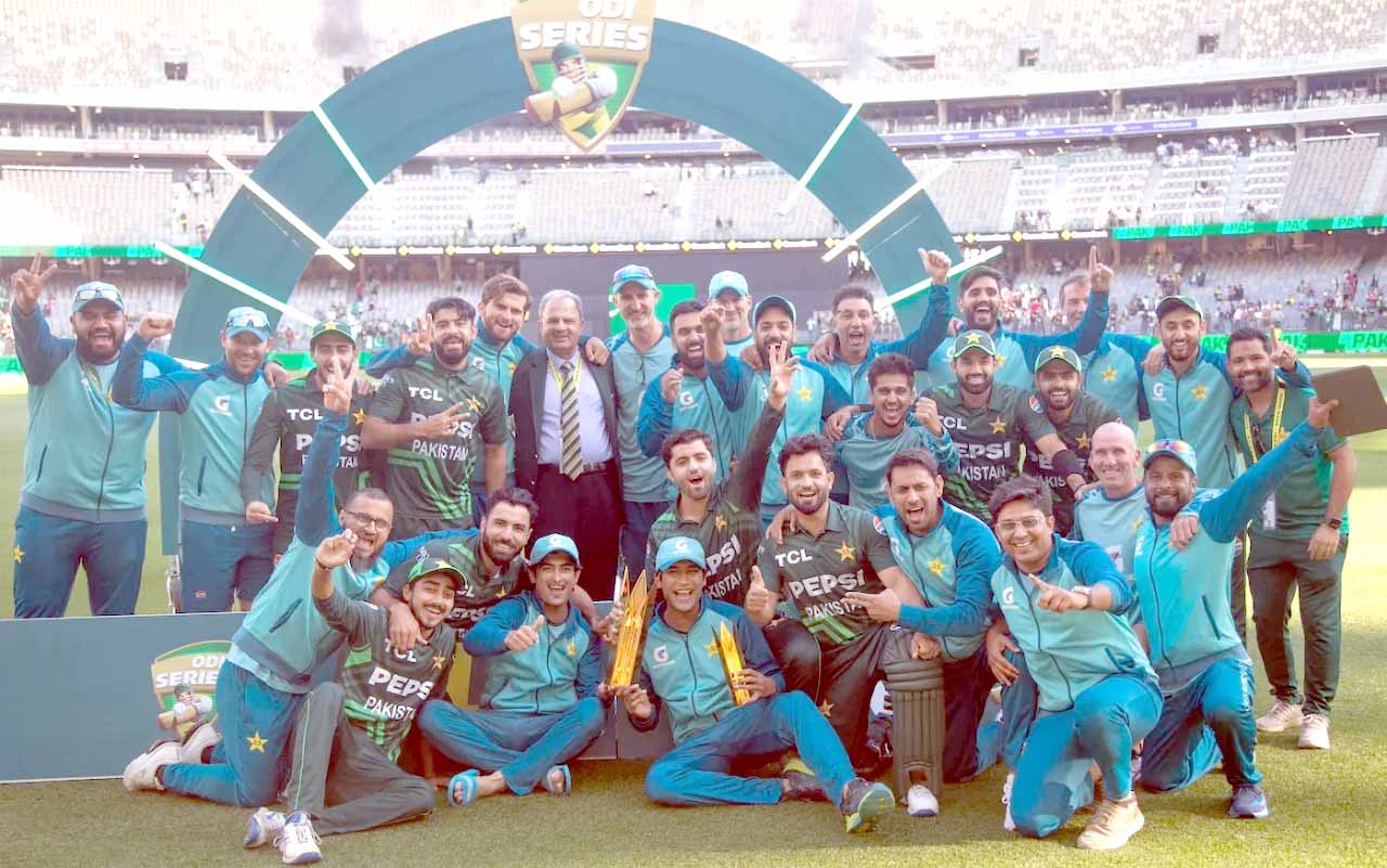 پرتھ، 10 نومبر (یواین آئی)پاکستان نے آسٹریلیا کو تیسرے اور فیصلہ کن میچ میں 8 وکٹوں سے شکست دے کر آسٹریلیاکے خلاف اسی کی سرزمین پر 22 سال بعد ون ڈے سیریز جیت کر نئی تاریخ رقم کردی۔دوسرے میچ کے بعد آج تیسرے ون ڈے میں بھی پاکستانی گیندبازوں نے آسٹریلیائی بلے بازوں کو مشکل میں ڈال دیا اور پوری ٹیم آج بھی مکمل اوورز نہیں کھیل سکی۔پرتھ میں سیریز کے تیسرے اور فیصلہ کُن میچ میں آسٹریلیا کی پوری ٹیم 31.5 اوورز میں 140 رنز بنا کر آؤٹ ہوگئی تھی۔ پاکستان نے تیسرے ون ڈے میچ میں آسٹریلیا کیخلاف ٹاس جیت کر بولنگ کا فیصلہ کیا تھا۔پاکستان نے مطلوبہ ہدف 27 اوورز میں 2 وکٹ کے نقصان پر حاصل کرلیا، پاکستانی ٹیم کی اوپننگ جوڑی نے ایک بار پھر پر اعتماد انداز میں بلےبازی کا آغاز کیا اور ٹیم کو 84 رنز کا آغاز فراہم کیا۔پچھلے میچ میں نصف سنچریاں بنانے والے صائم ایوب نے 42 رنز کی اننگز کھیلی جب کہ عبداللہ شفیق 37 رنز بناکر آؤٹ ہوئے۔ کپتان محمد رضوان 30 اور بابراعظم 28 رنز ناٹ آوٹ رہے۔آسٹریلیا کی جانب سے دونوں وکٹیں لینس موریس نے حاصل کیں۔پاکستان کی جانب سے عبداللّٰہ شفیق اور صائم ایوب نے اننگ کا آغاز کیا اور دونوں بیٹرز نے پُراعتماد انداز سے بیٹنگ کی اور 84 رنز کی پارٹنرشپ قائم کی۔پاکستان کی پہلی وکٹ 84 اور دوسری وکٹ 85 رنز پر گری، عبداللّٰہ شفیق 37 اور صائم ایوب 42 رنز بنا کر آؤٹ ہوئے۔بعدازاں بابر اعظم اور کپتان محمد رضوان نے پارٹنر شپ قائم کی اور میچ ختم کیا۔بابر اعظم 28 اور محمد رضوان 30 رنز بنا کر ناٹ آؤٹ رہے۔آج بھی پاکستانی فاسٹ بولرز نے ٹیم کو اچھا آغاز فراہم کیا، نسیم شاہ نے 20 رنز پر پہلی اور شاہین آفریدی نے 36 رنز پر دوسری وکٹ حاصل کی۔پرتھ میں کھیلے گئے ایک روزہ سیریز کے آخری میچ میں پاکستان کے تیزگیندبازوں نے آسٹریلیائی بلے بازی کو تباہ کردیا اور ٹیم نے 31.5 اوورز میں آسٹریلیا کے 9 کھلاڑی 140 رنز پر سمیٹ دیئے جب کہ ایک کھلاڑی انجری کی وجہ سے دوبارہ بیٹنگ کے لیے میدان میں نہیں اترا۔اس سے قبل پاکستانی ٹیم کے کپتان محمد رضوان نے ٹاس جیت کر پہلے آسٹریلیا کو بیٹنگ کی دعوت دی، آسٹریلیا کی جانب سے سین ایبٹ 30 رنز بناکر نمایاں رہے اور ان کے 6 کھلاڑی ڈبل فیگر میں بھی نہ پہنچ سکے۔آسٹریلیا کی اوپننگ جوڑی اس میچ میں بھی ناکام ثابت ہوئی، جیک فریزر میکگورک صرف 7 رنز بنانے کے بعد آؤٹ ہوئے اور میتھیو شارٹ نے 22 رنز کی اننگز کھیلی۔کپتان جوش انگلس بھی 7 ہی رنز بناسکے، ایرون ہارڈی نے 12 رنز بنانے میں کامیاب رہے، کوپر کونولی 7 رنز پر ریٹائرڈ ہرٹ ہوگئے، محمد حسنین کی گیند ان کے ہاتھ پر لگی جس سے وہ انجرڈ ہوگئے۔گلین میکسوئل مسلسل تیسرے میچ میں حارث رؤف کا شکار بنے، وہ کھاتہ کھولے بغیر ہی پویلین واپس لوٹ گئے، آل راؤنڈر مارکس اسٹونئس بھی 8 رنز ہی بناسکے، ایڈم زمپا نے 13 رنز بنائے۔پاکستانی ٹیم کی جانب سے نسیم شاہ نے اور شاہین شاہ آفریدی نے 3،3 حارث رؤف نے 2 اور محمد حسنین نے ایک وکٹ حاصل کی۔پاکستانی ٹیم کی جانب سے گزشتہ میچ کی فاتح سائیڈ برقرار رکھی گئی ہے، تاہم آسٹریلیا نے ٹیم میں 5 تبدیلیاں کی ہیں، میزبان ٹیم نے کوپر کونولی، مارکس اسٹوئنس، شان ایبٹ، اسپینسر جونسن اور لینس موریس کو موقع دیا ہے۔واضح رہے کہ آسٹریلیا نے پہلے ون ڈے انٹرنیشنل میں دلچسپ مقابلے کے بعد پاکستان کو شکست دی تھی جب کہ پاک ٹیم نے دوسرے میچ میں شاندار کھیل پیش کرتے ہوئے میزبان ٹیم کو ہرا کر سیریز 1-1 سے برابر کردی تھی۔