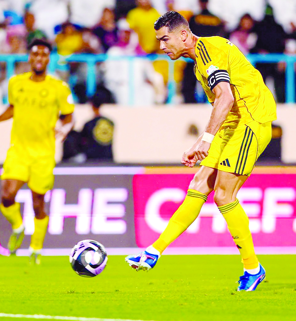 ریاض،13 اپریل ( یو این آئی)پرتگال کے لیجنڈری فٹ بالر کرسٹیانو رونالڈو نے رواں سیزن کا اپنا 24 واں لیگ گول اسکور کر کے النصر کو الاخدود کے خلاف 0-2 سے فتح دلا دی۔ اس جیت کے ساتھ ہی النصر نے سعودی پرو لیگ کے پوائنٹس ٹیبل پر اپنی 5 پوائنٹس کی برتری دوبارہ حاصل کر لی ہے۔النصر نے میچ کا آغاز جارحانہ انداز میں کیا اور میزبان ٹیم پر دباؤ برقرار رکھا۔میچ کے 15 ویں منٹ میں کنگزلے کومن اور نواف بوشل کے بہترین تال میل کی بدولت رونالڈو کو موقع ملا، جسے انہوں نے گول میں تبدیل کر کے ٹیم کو 0-1 کی برتری دلائی۔دوسرے ہاف کے آغاز (47 ویں منٹ) میں پرتگالی اسٹار جواؤ فیلکس نے دوسرا گول کر کے النصر کی فتح یقینی بنا دی۔ فیلکس، جو 14 میچوں سے گول کرنے میں ناکام رہے تھے، اب پچھلے دو میچوں میں تین گول کر چکے ہیں۔سیزن کے صرف 6 میچز باقی ہیں اور ٹائٹل کی دوڑ دلچسپ مرحلے میں داخل ہو گئی ہے: