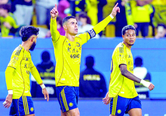 جدہ،28 دسمبر (یواین آئی ) پرتگال کے عالمی شہرت یافتہ فٹبال اسٹار کرسٹیانو رونالڈو نے دو شاندار گول داغ کر سعودی پرو لیگ میں النصر کو مسلسل دسویں تاریخی فتح دلا دی۔ دیر رات کھیلے گئے میچ میں سعودی کلب النصر نے الاخدود کو 0-3 سے شکست دی۔ اس کامیابی کے ساتھ النصر نے سیزن کا شاندار آغاز برقرار رکھتے ہوئے پوائنٹس ٹیبل پر چار پوائنٹس کی برتری کے ساتھ پہلی پوزیشن مضبوط کر لی ہے۔میچ کے دوران کرسٹیانو رونالڈو نے ہاف آور کے کچھ ہی بعد اسکورنگ کا آغاز کیا، جب وہ اینجلو گومز کی ہیڈر اسسٹ پر پچھلے پول پر پہنچے اور آسانی سے فٹبال جال میں پہنچا دی۔ انہوں نے ہاف ٹائم کے بالکل اختتام پر اپنی فطری مہارت کا مظاہرہ کرتے ہوئے مارسیلو بروزووچ کے پاس کو اپنے جوتے کے سائیڈ سے جال میں ڈال کر برتری دگنی کر دی۔رونالڈو دوسرے ہاف میں ہیٹ ٹرک مکمل کرنے کے قریب پہنچ گئے تھے، تاہم معمولی آف سائیڈ قرار دیے جانے کے باعث وہ اپنا ساتواں سعودی پرو لیگ گول اسکور نہ کر سکے۔بعدازاں ان کے ہم وطن جواؤ فیلکس نے میچ کے آخری لمحات میں تیسرا گول کر کے النصر کی شاندار فتح پر مہر ثبت کردی۔ اس فتح کے ساتھ النصر نے ناصرف اپنی تاریخی فتوحات کا سلسلہ برقرار رکھا بلکہ یہ کامیابی سعودی عرب میں 2023 میں شمولیت کے بعد کرسٹیانو رونالڈو کے پہلے لیگ خطاب کے خواب کی جانب ایک اہم قدم بھی ثابت ہوئی۔