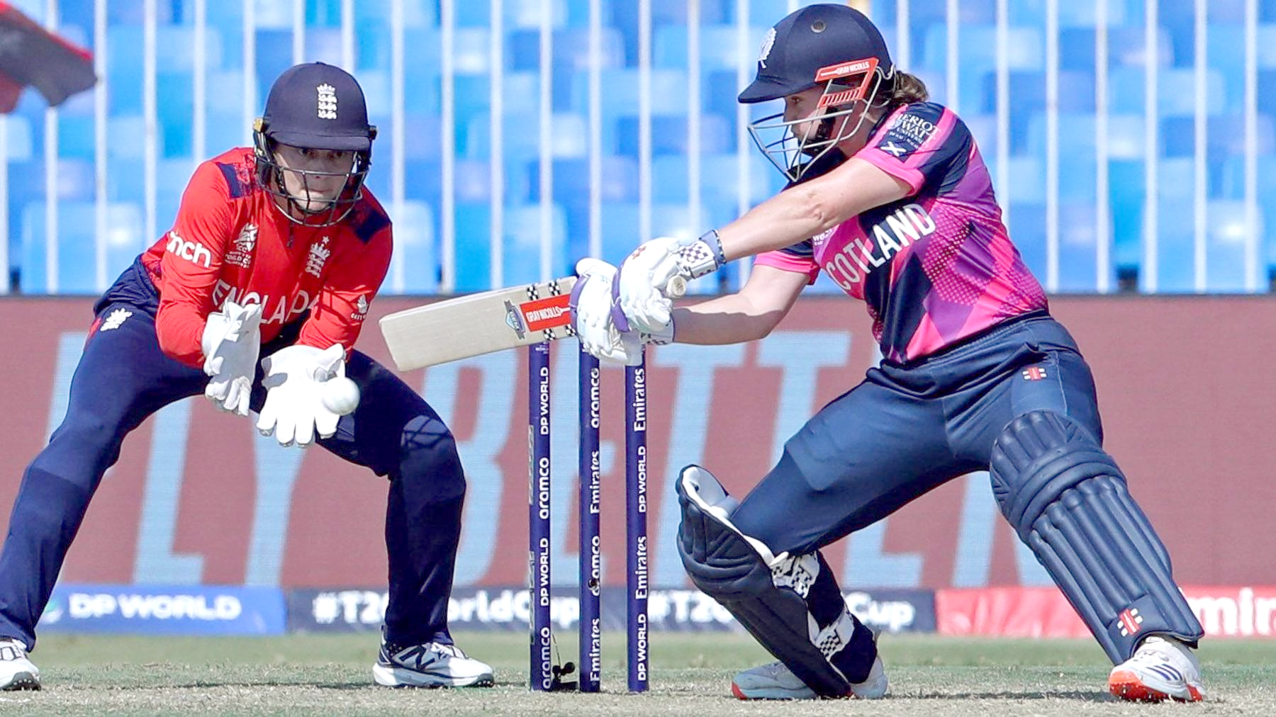 لاہور، 13 اپریل (یو این آئی) کپتان کیتھرین برائس (60) اور میگن میک کال (58) کی نصف سنچریوں کی بدولت اس کے بعد ریچل سلیٹر، ابتہا مقصود اور کیتھری کیتھری کی شاندار بولنگ کی بدولت اسکاٹ لینڈ ویمنز نے اتوار کو ویمنز ورلڈ کپ کوالیفائر میں تھائی لینڈ کو 58 رنز سے شکست دے دی۔اسکاٹ لینڈ کے 206 رنز کے جواب میں بیٹنگ کے لیے آتے ہوئے تھائی لینڈ کی اوپننگ جوڑی نطایا بوچاتھم اور چنیڈا سوتھیروانگ نے اچھی شروعات کرنے کی کوشش کی۔ نویں اوور میں ریچل سلیٹر نے نتایا بوچاتھم (20) کو ایل بی ڈبلیو آؤٹ کر کے تھائی لینڈ کو 41 کے اسکور پر پہلی کامیابی دلائی۔اس کے بعد اسکاٹ لینڈ کے باؤلنگ اٹیک کے خلاف تھائی لینڈ کی بیٹنگ زیادہ دیر تک پچ پر نہ ٹھہر سکی۔ نتھاکن چنتھم واحد بلے باز تھی جنہوں نے 58 گیندوں پر 63 رنز بنائے۔ چنیڈا ستھیروانگ (18) آؤٹ ہوئے۔ کیتھرین فریزر، ابتہا مقصود اور ریچل سلیٹر نے تین تین وکٹیں لے کر تھائی لینڈ کو 31.3 اوورز میں 148 رنز پر آؤٹ کرکے میچ 58 رنز سے جیت لیا۔اس سے قبل اسکاٹ لینڈ ویمن، جنہوں نے ٹاس جیت کر پہلے بیٹنگ کا فیصلہ کیا، نے اننگز میں 12 رنز بنائے، کیتھرین برائس (60)، میگن میک کال (58)، ایلسا لسٹر (38) اور ایبی ایٹکن ڈرمنڈ (22) نے سب سے زیادہ رنز بنائے۔ تھائی لینڈ کے گیند بازوں نے اسکاٹ لینڈ کی پوری ٹیم کو 41 اوورز میں 206 رنز پر ڈھیر کردیا تھا۔