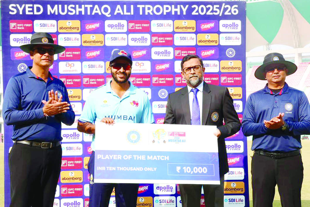 لکھنؤ، 07دسمبر (ہ س )۔ ستاروں سے سجی ممبئی کی ٹیم نے ہفتہ کو سید مشتاق علی ٹی 20 ٹرافی کے گروپ اے کے ایک میچ میں چھتیس گڑھ کو آٹھ وکٹوں سے شکست دے کر سپر لیگ میں جگہ حاصل کرلی۔ دفاعی چمپئن ممبئی اور آندھرا نے چھ میں سے پانچ میچ جیت کر 20-20 پوائنٹس کے ساتھ اگلے مرحلے میں جگہ حاصل کی۔ممبئی اپنے گیند بازوں اور بلے بازوں دونوں کی شاندار کارکردگی کی بدولت شروع سے ہی میچ پر حاوی رہا۔ کپتان شاردول ٹھاکر نے 19 رنز کے عوض 3 وکٹیں حاصل کیں۔ تیز گیند باز تشار دیشپانڈے (38 رن پر 2 وکٹ) اور نوجوان سورینش شیڈگے (12 رن پر 2 وکٹ) نے اپوزیشن کو سنبھلنے سے روک دیا۔ چھتیس گڑھ کی ٹیم 19.4 اوور میں 121 رنز پر ڈھیر ہوگئی۔ہدف کا تعاقب کرتے ہوئے ممبئی نے 15.5 اوور میں 2 وکٹ پر 122 رنز بنائے۔ آیوش مہاترے نے 39 گیندوں پر تین چوکوں اور پانچ چھکوں کی مدد سے ناٹ آؤٹ 69 رنز بنائے۔ اجنکیا رہانے نے 28 گیندوں پر 40 رنز جوڑ کر 82 رنز کی شراکت قائم کی۔ایک اور میچ میں آندھرا نے کیرالہ کو سات وکٹوں سے شکست دی۔ سنجو سیمسن کے 56 گیندوں پر 73 رنز کے باوجود کیرالہ سات وکٹ پر 119 رنز ہی بنا سکی۔ سریکر بھرت (53) کی مدد سے آندھرا نے ہدف 12 اوور میں حاصل کر لیا۔ اوڈیشہ نے آسام کو 73 رنز سے شکست دی اوڈیشہ نے چار وکٹ پر 171 رنز بنائے اور آسام 16 اوور میں 98 رنز پر آل آؤٹ ہو گیا۔