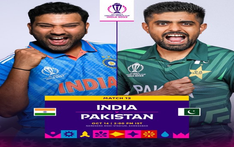 آئی سی سی کرکٹ ورلڈ کپ میں آج احمد آباد کے نریندر مودی اسٹیڈیم میں بھارت کا مقابلہ اپنے دیرینہ حریف پاکستان سے ہوگا۔ یہ میچ دوپہر 2 بجے شروع ہوگا۔