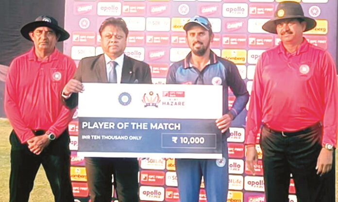 ہمانشو تیواری اور کپتان ایس گنی کی شاندار گیند بازی؛ آکاش راج اور مہرور کی نصف سنچریاں