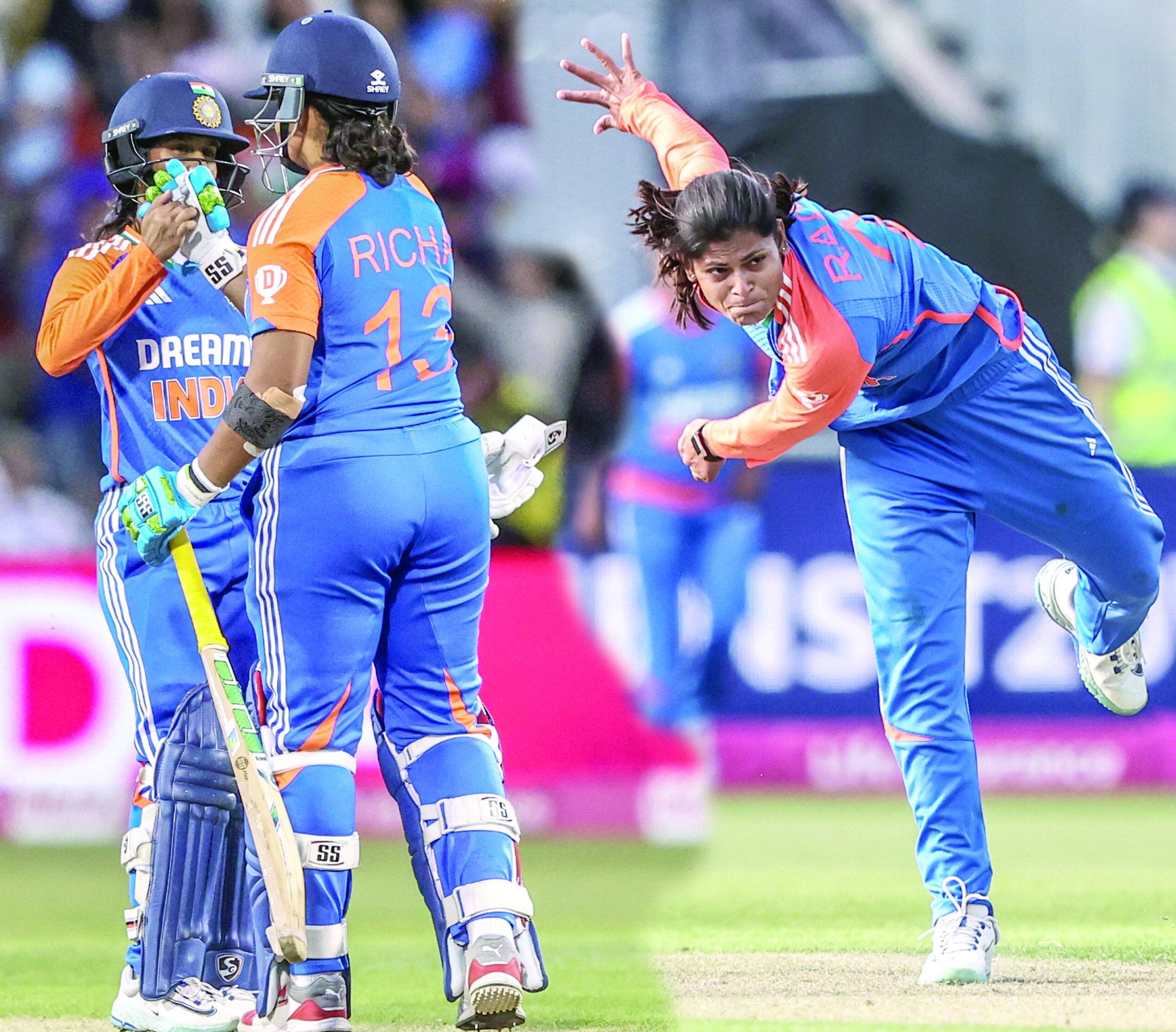 مانچسٹر، 10 جولائی (ہ س)۔ ہندوستانی خواتین کرکٹ ٹیم نے انگلینڈ کے خلاف چوتھا ٹی 20 میچ چھ وکٹوں سے جیت لیا اور پانچ میچوں کی سیریز میں 1-3 کی ناقابل تسخیر برتری حاصل کر لی۔ یہ فتح مانچسٹر کے اولڈ ٹریفورڈ گراونڈ میں درج کی گئی اور اسی کے ساتھ ہی ہندوستان نے انگلینڈ کے خلاف گھریلو یا غیر ملکی سرزمین پر پہلی بار ٹی 20 دو طرفہ سیریز جیتی۔127 رنوں کے معمولی ہدف کا تعاقب کرتے ہوئے ہندوستان کی سلامی جوڑی اسمرتی مندھانا (32 گیندوں پر 31 رن) اور شیفالی ورما (19 گیندوں پر 31 رن) نے تیز شروعات کی اور ساتویں اوور تک 56 رنوں کی شراکت داری کی۔ تاہم، شیفالی کو آف اسپنر چارلی ڈین نے آوٹ کر کے انگلینڈ کو پہلی کامیابی دلائی۔ جلد ہی اسمرتی بھی پویلین لوٹ گئیں اور انگلینڈ کی واپسی کی امیدیں روشن ہوگئیں۔اس کے بعد کپتان ہرمن پریت کور (25 گیندوں پر 26) اور جیمیما روڈریگس (22 گیندوں پر 24 ناٹ آوٹ) کے درمیان 48 رنوں کی شراکت قائم ہوئی جس نے ٹیم کو تین اوورز باقی رہتے ہدف تک پہنچا دیا۔اس سے قبل انگلینڈ نے مسلسل چوتھی بار ٹاس جیت کر بلے بازی کا فیصلہ کیا۔ لیکن تیسرے میچ کی طرح آغاز کو دہرانا انگلش سلامی بلے باز کے لیے مشکل ثابت ہوا۔ صوفیہ ڈنکلے (19 گیندوں پر 22 رن) اور ڈینی وائٹ ہوج (7 گیندوں پر 5 رن) کو پاور پلے میں ہی دیپتی شرما اور این شری چرنی نے پویلین بھیج دیا۔بعد ازاں ایلیس کیپسی (21 گیندوں پر 18 رن) اور کپتان ٹمی بیومونٹ (19 گیندوں پر 20 رن) نے اننگز کو بچانے کی کوشش کی لیکن ہندوستانی اسپنرز نے زبردست کنٹرول کا مظاہرہ کیا اور وقفے وقفے سے وکٹیں حاصل کرتے رہے۔ساتویں اور بیسویں اوور کے درمیان ہندوستانی اسپنرز نے نو اوورز پھینکے اور صرف 56 رن دے کر پانچ وکٹیں حاصل کیں۔ ہندوستان کی جانب سے رادھا یادو سب سے کامیاب گیند باز رہیں جنہوں نے چار اوورز میں 15 رن دے کر دو وکٹیں حاصل کیں۔سوفی ایکلسٹون اور اسی وونگ نے آخری اوور میں کچھ بڑے شاٹس لگائے لیکن انگلینڈ کا 126 کا ٹوٹل دفاع کے لیے کافی نہیں تھا۔ ہندوستان نے اب سیریز 1-3 کی ناقابل تسخیر برتری کے ساتھ جیت لی ہے اور فائنل میچ محض ایک رسمی ہے۔