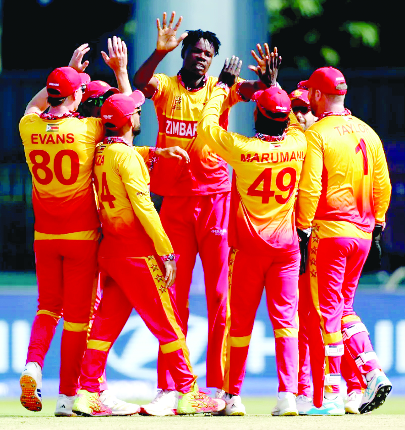 کولمبو،9 فروری(یو این آئی ) بلیسنگ مزاربانی، رچرڈ نگاراوا اور بریڈ ایونز کی بالنگ اٹیک (تین تین وکٹیں) کے بعد برائن بینیٹ (48 ناٹ آؤٹ) کی عمدہ بلے بازی کی بدولت زمبابوے نے پیر کے روز ٹی 20 ورلڈ کپ کے آٹھویں میچ میں عمان کو 39 گیندیں قبل 8 وکٹوں سے شکست دے دی۔ اس کامیابی کے ساتھ ہی زمبابوے نے ٹورنامنٹ میں جیت کا کھاتہ کھول لیا ہے۔104 رنز کے معمولی ہدف کے تعاقب میں زمبابوے کی شروعات کچھ خاص نہ رہی اور چوتھے اوور میں سفیان محمود نے تدیواناشے مارومانی (21) اور ڈیون میئرز (0) کو آؤٹ کر کے دو جھٹکے دیے۔ تاہم، چوتھے نمبر پر آنے والے تجربہ کار برینڈن ٹیلر نے برائن بینیٹ کے ساتھ مل کر اننگز کو سنبھالا۔ دونوں کے درمیان تیسری وکٹ کے لیے 68 رنز کی شراکت قائم ہوئی۔ ٹیلر 31 رنز بنا کر ریٹائر ہرٹ ہوئے، جس کے بعد کپتان سکندر رضا (5 ناٹ آؤٹ) نے بینیٹ کے ساتھ مل کر 13.3 اوورز میں 106 رنز بنا کر ہدف حاصل کر لیا۔ برائن بینیٹ نے 36 گیندوں پر 48 رنز کی ناقابلِ شکست اننگز کھیلی۔اس سے قبل زمبابوے نے ٹاس جیت کر پہلے بالنگ کا فیصلہ کیا جو بالکل درست ثابت ہوا۔ عمان کی شروعات انتہائی مایوس کن رہی اور محض 27 رنز کے مجموعی اسکور پر اس کے پانچ بلے باز پویلین لوٹ گئے۔ مشکل گھڑی میں سفیان محمود اور ونائک شکلا نے چھٹی وکٹ کے لیے 42 رنز جوڑ کر ٹیم کو سہارا دینے کی کوشش کی۔رچرڈ نگاراوا نے 15ویں اوور میں ونائک شکلا (28) اور جتن رمانندی (1) کو آؤٹ کر کے عمان کی کمر توڑ دی۔ بریڈ ایونز نے سفیان محمود (25) کو اپنا شکار بنایا جبکہ ندیم خان نے 20 رنز بنائے۔ زمبابوے کے بالرز کے سامنے عمان کی پوری ٹیم 19.5 اوورز میں محض 103 رنز پر ڈھیر ہو گئی۔ زمبابوے کی جانب سے بلیسنگ مزاربانی، رچرڈ نگاراوا اور بریڈ ایونز نے تین تین جبکہ سکندر رضا نے ایک وکٹ حاصل کی۔