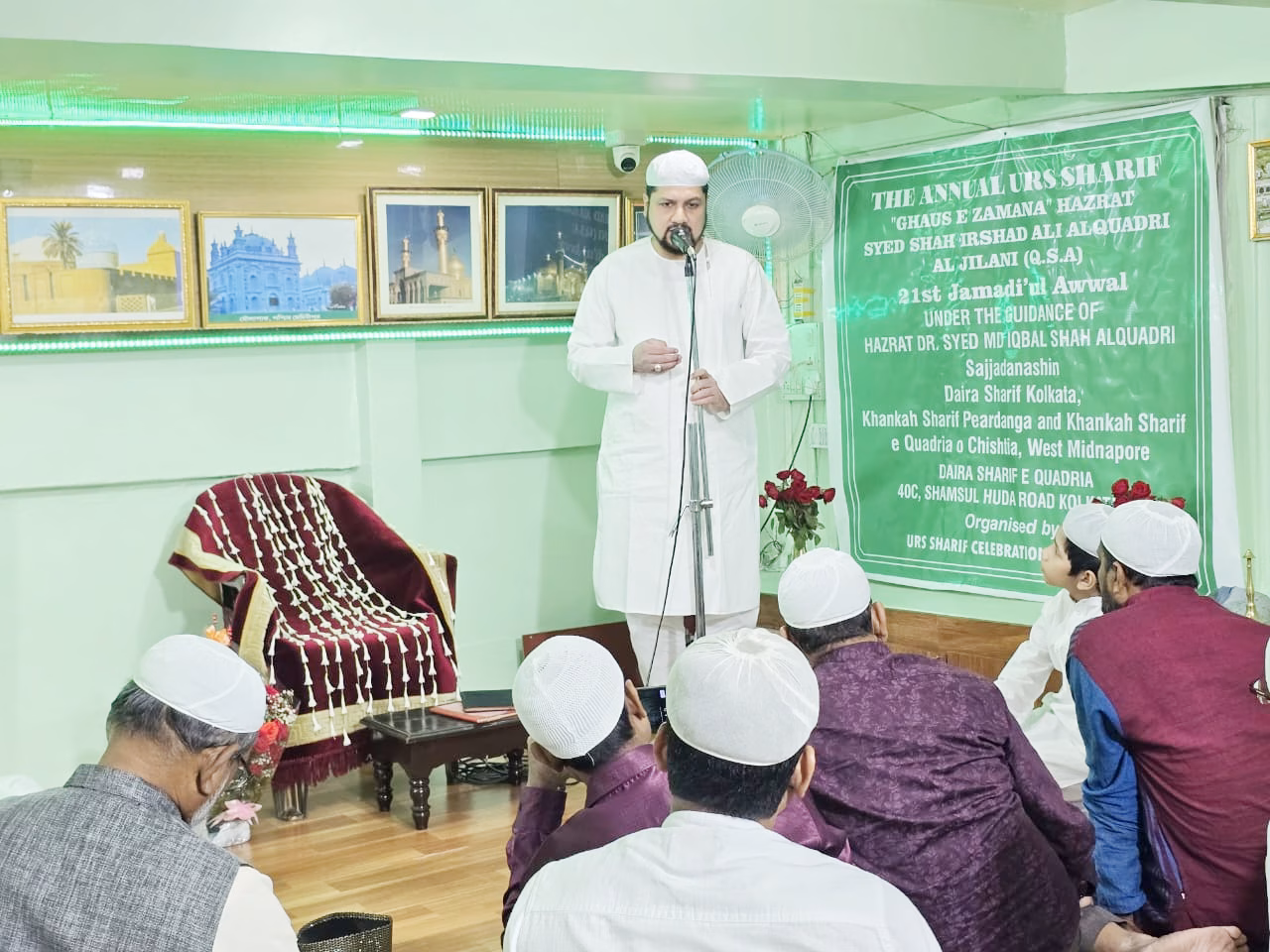 کولکاتہ: کولکاتہ کے دائرہ شریف(پارک سرکس) میں بنگال میں سلسلہ قادریہ کے عظیم صوفی”حضور غوثِ زمانہ” حضرت سید شاہ ارشاد علی القادری الجیلانی قدس اللہ سرہ العزیز 72 واں سالانہ عرس مبارک پیر طریقت حضرت ڈاکٹر سید محمد اقبال شاہ القادری ممبر مغربی بنگال اقلیتی کمیشن کی زیر سرپرستی انتہائی عقیدت و احترام کے ساتھ ادا کی گئی۔ اس موقع کثیر تعداد میں مریدین اور معتقدین نے شرکت کی۔ سب سے پہلے ڈاکٹر اقبال شاہ القادری نے تلاوت قرآن کریم سے محفل کا آغاز فرمایا ۔ اسکے بعد ولی عہد پیر زادہ سید نہال مصطفیٰ القادری نے بارگاہ رسالت مآب ﷺ میں نعت شریف کا نذرانہ پیش کیا انکے علاوہ شیخ ابو المسعود، آکاش قادری، دوست محمد، شارق اقبال وغیرہ نے بھی حمد و نعت شریف کے نزرانے پیش کئے ۔ پیرِ طریقت ڈاکٹر اقبال شاہ القادری نے اپنی تقریر میں حضور غوثِ زمانہ کی حیات و دینی خدمات پر روشنی ڈالی۔ انہوں نے کہا کہ غوثِ زمانہ ایک عظیم ولی، جید عالم دین اور اعلیٰ پایہ کے صوفی شاعر تھے ۔ انکی زندگی ہمارے لئے مشعل راہ ہے ۔ وہ شریعت و طریقت کے پابند تھے۔ غیر منقسم بنگال کے وزیر اعلیٰ فضل الحق ، جسٹس سید محبوب مرشد،خان بہادر علامہ رضا علی وحشت جیسے لوگ انکے عقیدتمندوں میں سے تھے۔ آخر میں ڈاکٹر اقبال شاہ القادری نے تمام حاضرین مجلس کے لئے خصوصی دعا کر کے محفل کا اختتام فرمایا ۔