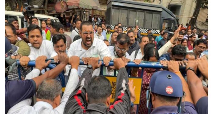 کولکاتہ: ریاست کے چیف الیکٹورل آفیسر (سی ای او) کے دفتر کے باہر ایس آئی آر معاملے پر کشیدگی عروج پر پہنچ گئی ہے۔ صبح سے ہی دفتر کے اطراف سخت سیکورٹی تعینات کی گئی تھی اور کئی علاقوں کو بیریکیڈز سے گھیر لیا گیا تاکہ کسی بھی ناخوشگوار واقعے سے بچا جا سکے۔ تاہم، صورتحال کافی گرم رہی اور کشیدگی میں اضافہ ہوا۔اپوزیشن لیڈر شوبھندو ادھیکاری کی قیادت میں بی جے پی کے ممبران اسمبلی دفتر پہنچے تو مظاہرین نے ‘واپس جاؤ ‘ کے نعرے بلند کرنا شروع کر دیے۔ بی ایل او رائٹس پروٹیکشن کمیٹی کے اراکین نے بی جے پی کے وفد کی آمد پر مزاحمت کی اور رکاوٹیں توڑنے کی کوشش کی، جس کے نتیجے میں حالات انتہائی گرما گرمی کا شکار ہو گئے۔ دونوں فریقوں کے درمیان زبانی اور جسمانی ٹکراؤ کے امکانات پیدا ہوئے، جس پر پولیس نے فوری طور پر بھاری نفری کے ساتھ مداخلت کی اور صورتحال کو قابو میں لایا۔واقعے کے بعد شوبھندو ادھیکاری نے سی ای او کے دفتر کا دورہ کیا اور واقعے پر شدید احتجاج ریکارڈ کروایا۔ انہوں نے مطالبہ کیا کہ کمیشن کا دفتر منتقل کیا جائے اور مرکزی فورسز کی مدد سے سیکورٹی فراہم کی جائے تاکہ مستقبل میں اس قسم کے تنازعات سے بچا جا سکے۔یہ واقعہ اس بات کی نشاندہی کرتا ہے کہ ایس آئی آر کے معاملے پر ریاست میں کشیدگی دن بہ دن بڑھ رہی ہے۔ گزشتہ چند دنوں سے بی ایل او رائٹس پروٹیکشن کمیٹی مسلسل کولکتہ میں سی ای او دفتر کے سامنے دھرنا دے رہی ہے۔ انتظامیہ نے اس دوران دفتر کے اطراف سخت سیکورٹی تعینات کر رکھی ہے، لیکن آج کے مظاہرے اور تصادم نے یہ واضح کر دیا کہ صورتحال ابھی بھی حساس اور متنازعہ ہے۔سی ای او دفتر کے باہر جاری کشیدگی نے نہ صرف سیاسی محاذ پر بلکہ عوامی سطح پر بھی تشویش پیدا کر دی ہے۔ سیاسی تجزیہ کاروں کا کہنا ہے کہ اگر معاملے کو فوری اور مناسب انداز میں حل نہ کیا گیا تو یہ تنازعہ مزید بڑھ سکتا ہے اور آئندہ کے انتخابات پر بھی اثر ڈال سکتا ہے۔