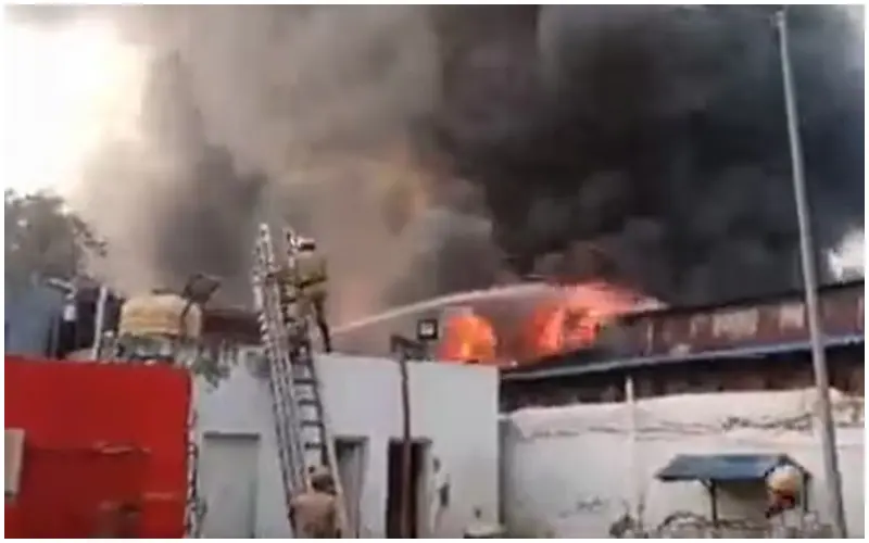 پلاسٹک کے سامان کے گودام میں خوفناک آتشزدگی