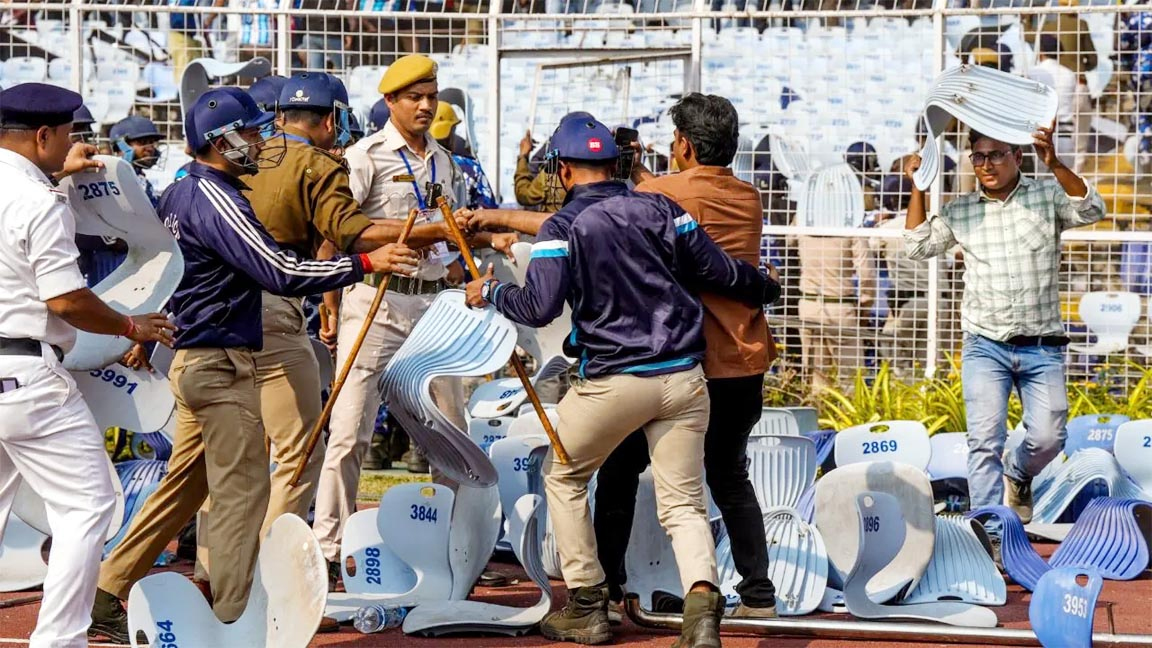 کولکاتہ :یووا بھارتی اسٹیڈیم میں پیش آئے توڑ پھوڑ کے واقعے کی تحقیقات نے نیا موڑ لے لیا ہے۔ وزیر اعلیٰ کی جانب سے مقرر کردہ تحقیقاتی کمیٹی نے اس پورے معاملے کی گہرائی سے جانچ کے لیے خصوصی تحقیقاتی ٹیم بنانے کی واضح سفارش کی ہے۔ ذرائع کے مطابق ریٹائرڈ جسٹس عاصم کمار رائے نے محض دو دن کے اندر کمیٹی کی ابتدائی رپورٹ تیار کر کے حکومت کو پیش کر دی ہے، جس میں کئی اہم اور چونکا دینے والے مشاہدات سامنے آئے ہیں۔
